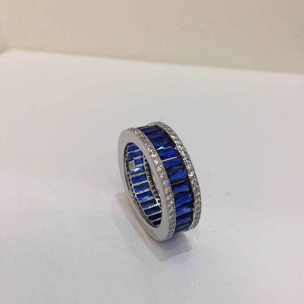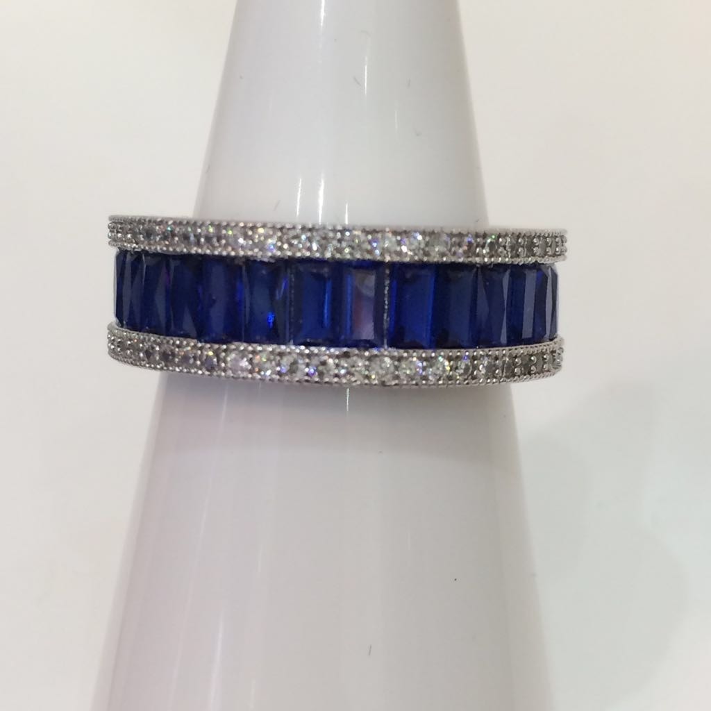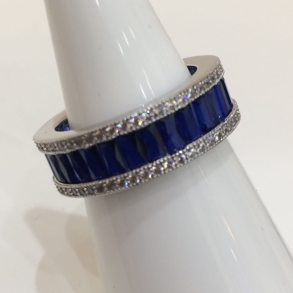 513630. SILBER-IMITATIONS-SAPHIR-CZ-VOLLSTÄNDIGER ETERNITY-RING.
