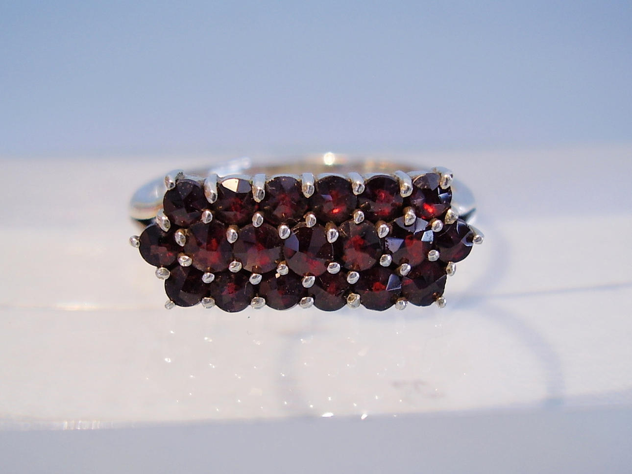GRANAT RING ANTIK SILBER 900.