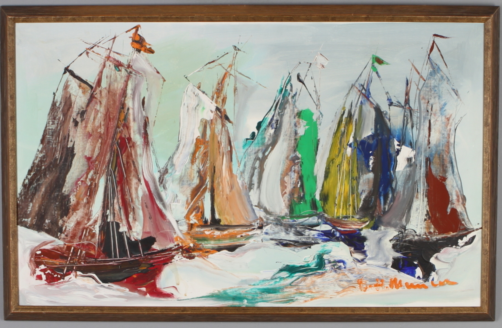 51585. HELMUTH MANTEL. Boote, Öl auf Leinwand, signiert.