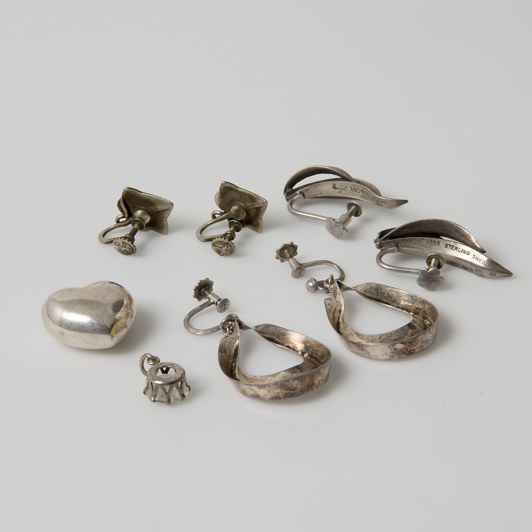515958. OHRRINGE UND ANHÄNGER, 5-teilig, Silber.
