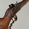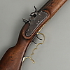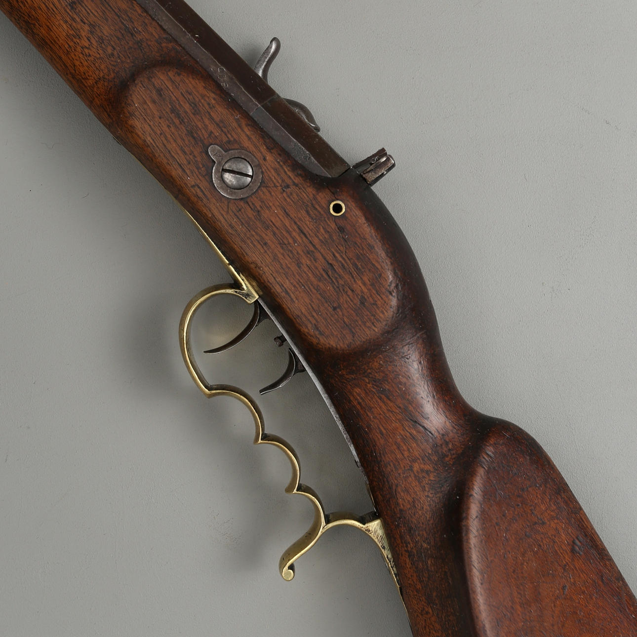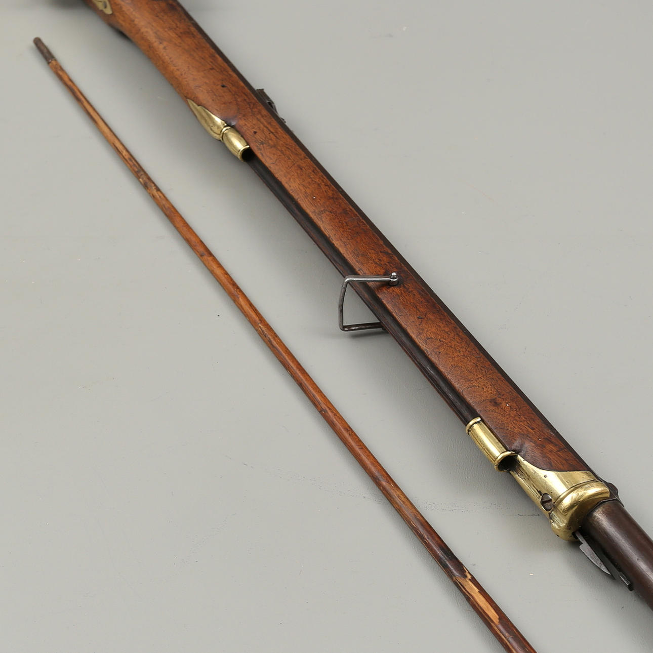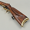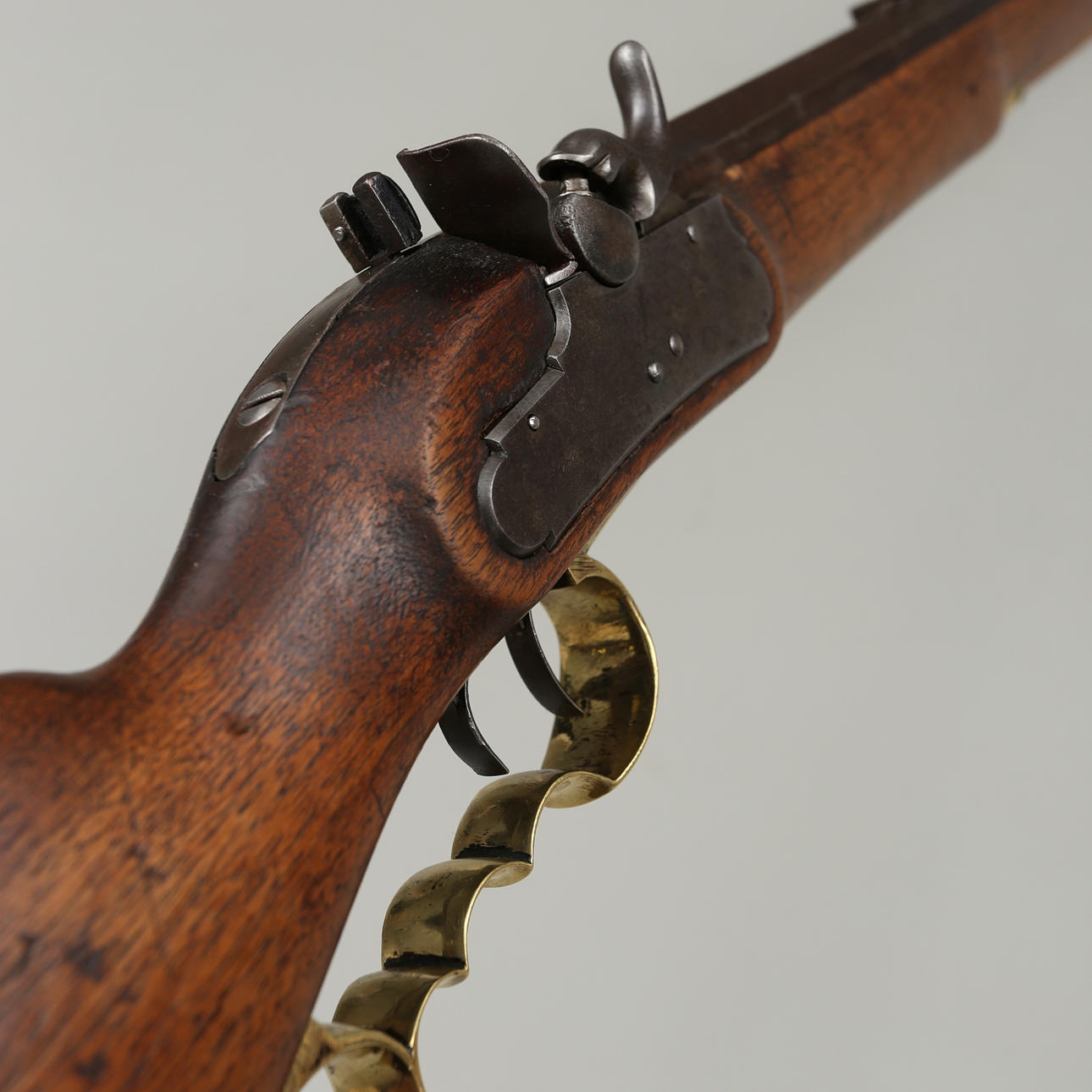 Türsteher mit kanneliertem Lauf, Reversed Buttlock, Feindruck, Vollschaft in Nussbaumholz, Messingbeschläge, Bajonettaufnahme für Säbel.
