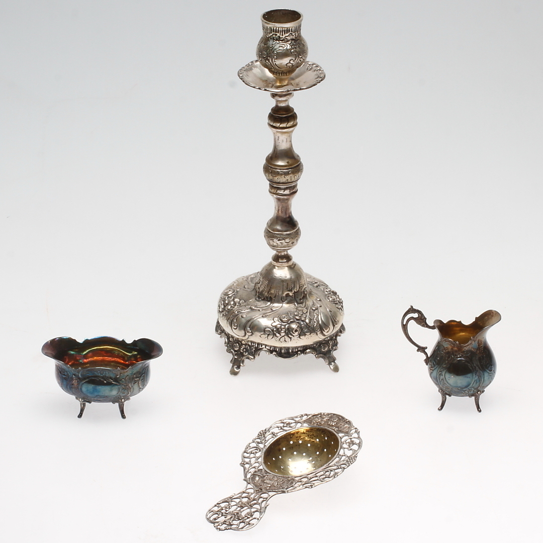 518970. SILBEROBJEKTE, 4-teilig, Gewicht ca. 510 Gramm.