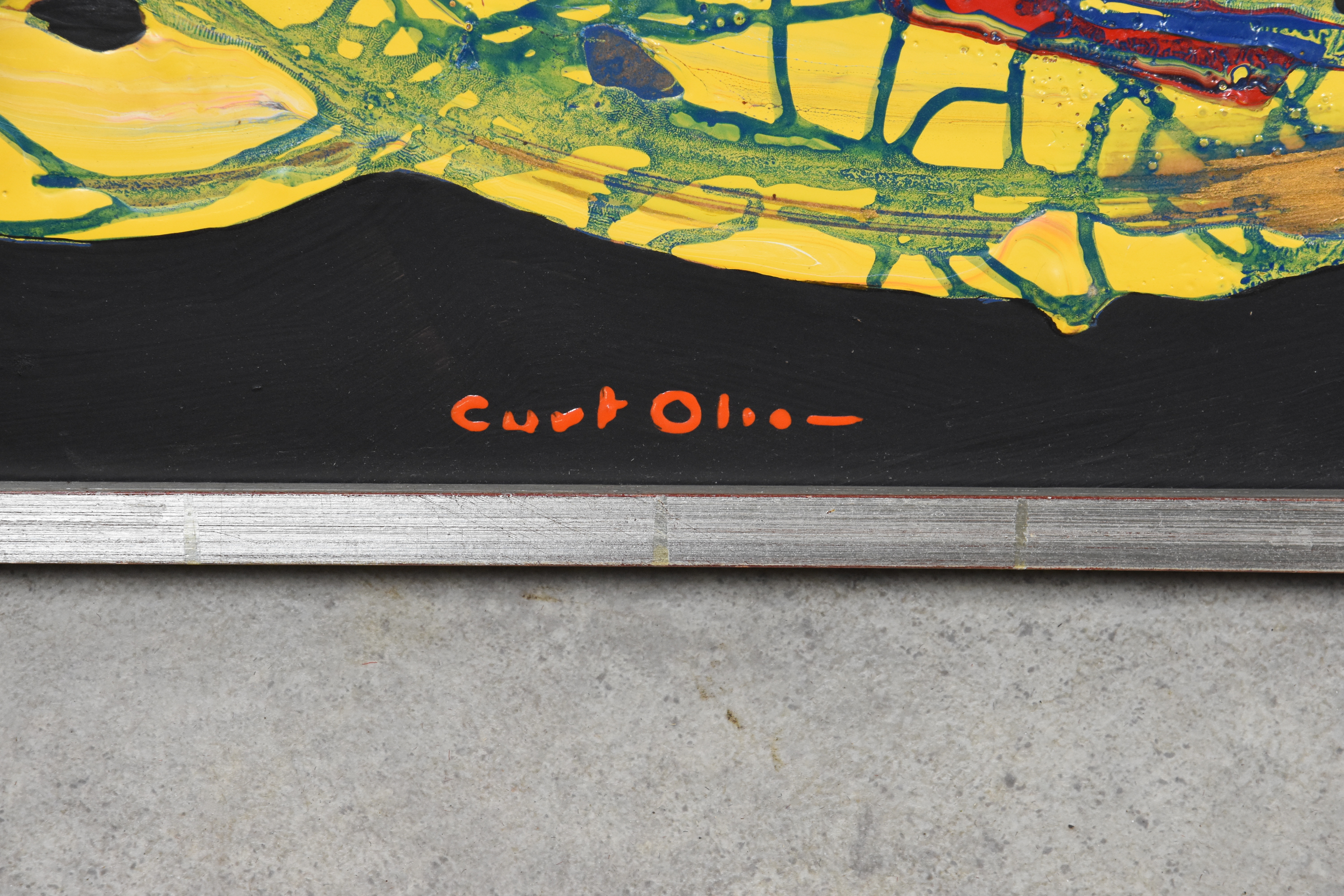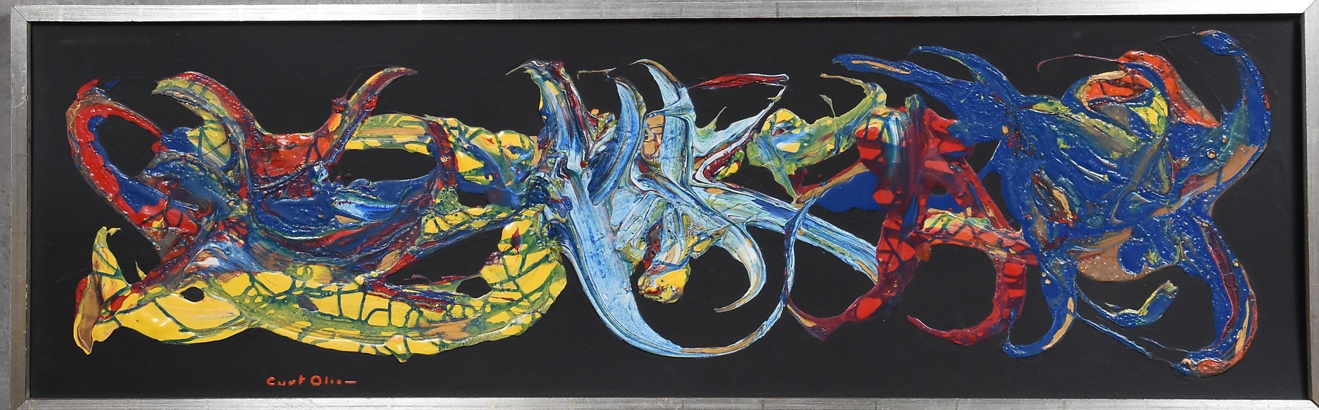 519357. CURT OLSSON. Öl auf Platte, Komposition, signiert.