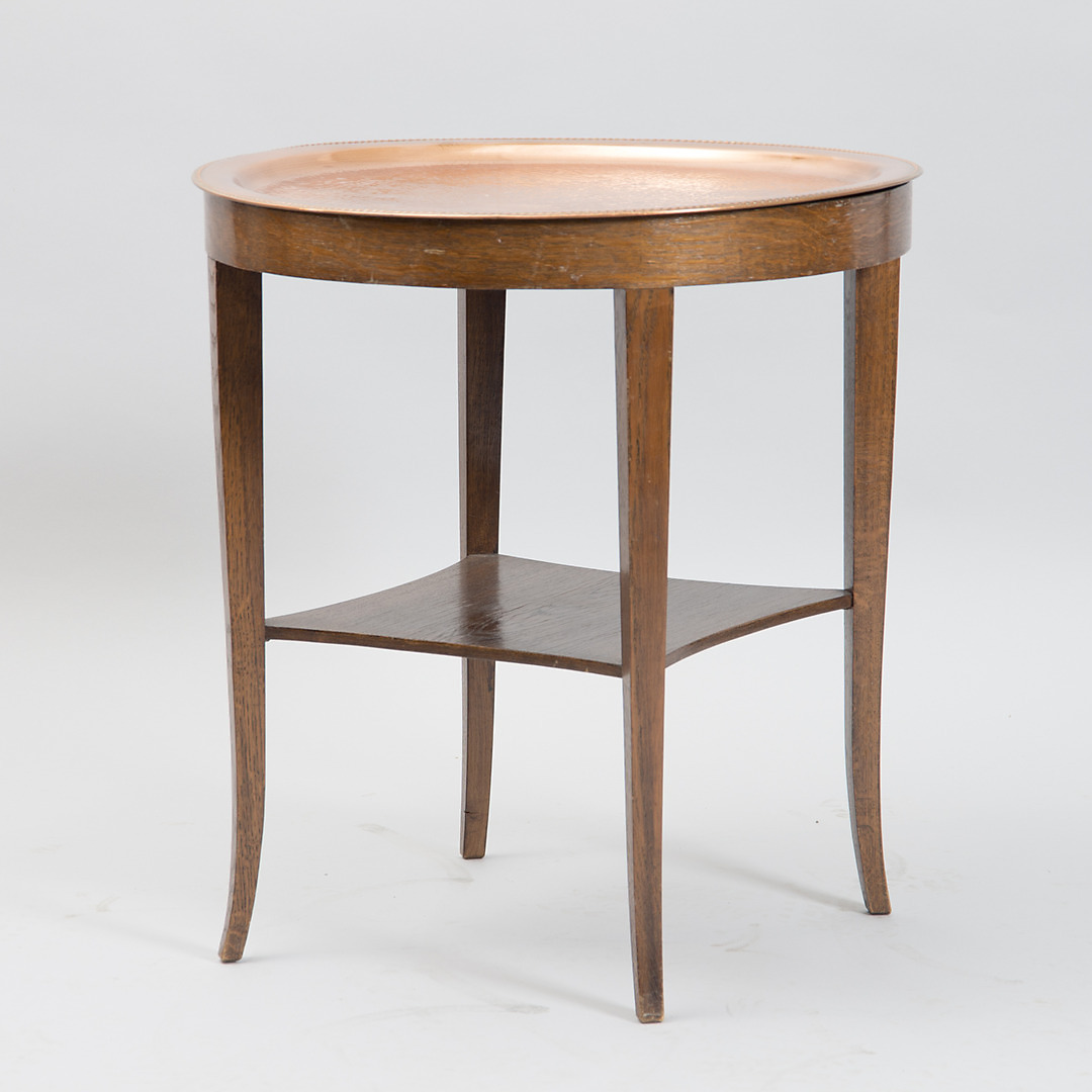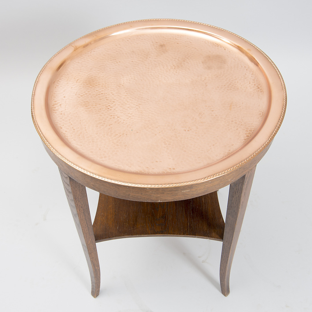519376. TISCH, Eiche/Kupfer, frühes 20. Jahrhundert.