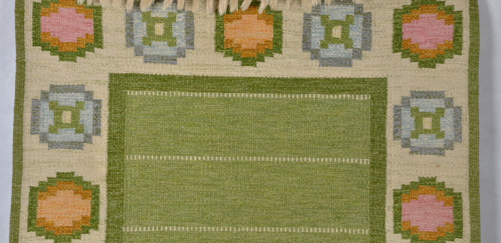 519380. TEPPICH, gerolltes Blatt, Ingegerd Silow, ca. 200x140 cm.