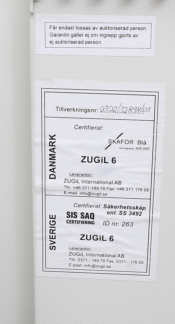 519491. WAFFENSCHRANK, Zugli 6, Dänemark.