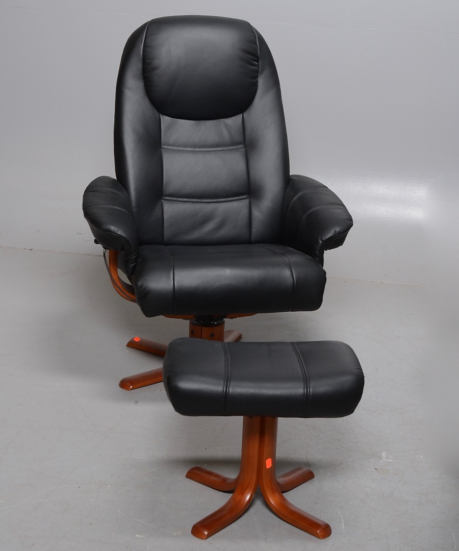 521638. SESSEL AUS LEDER MIT FUßHOCKERN.