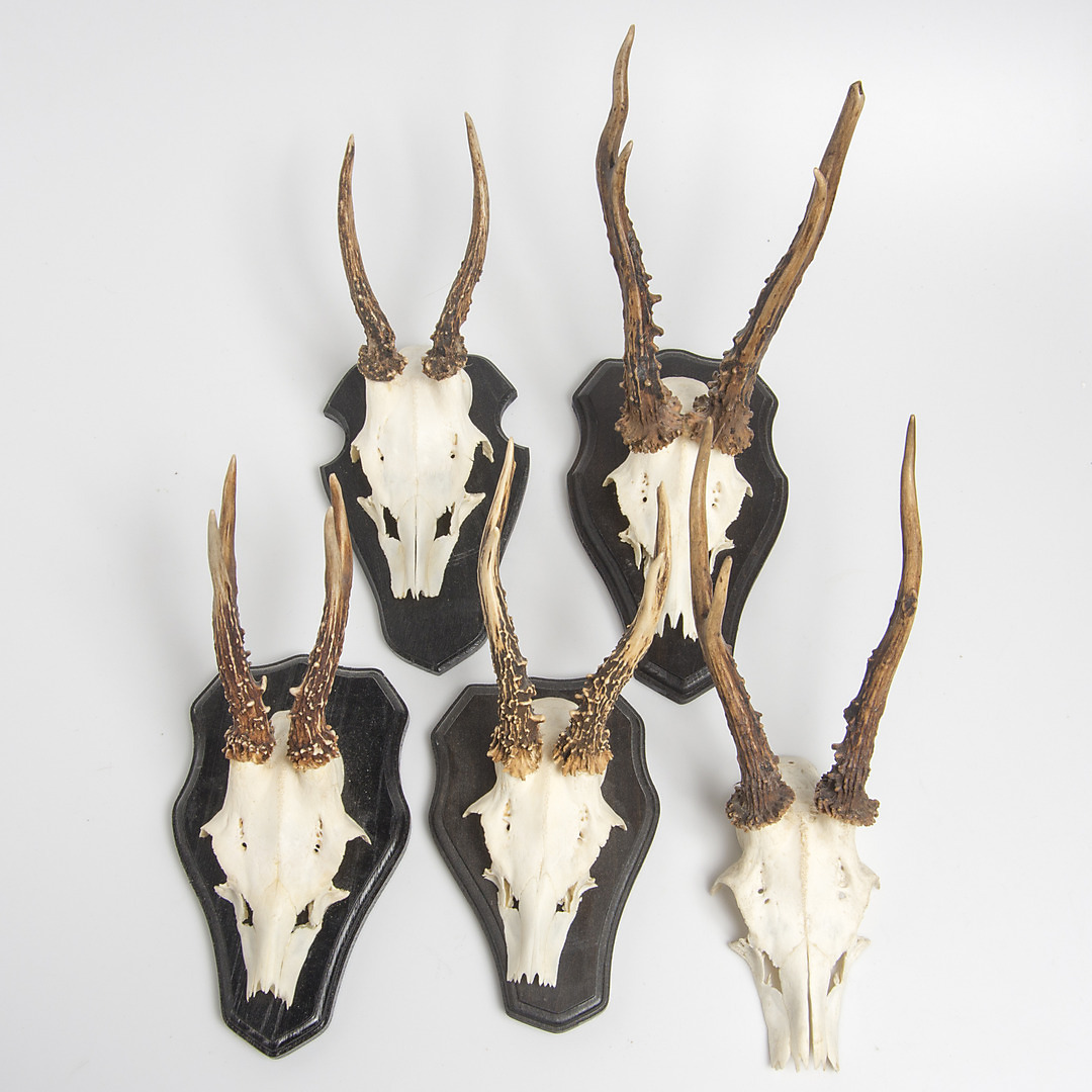 523831. JAGDTROPHÄEN, 5 Stück, Hirsch.