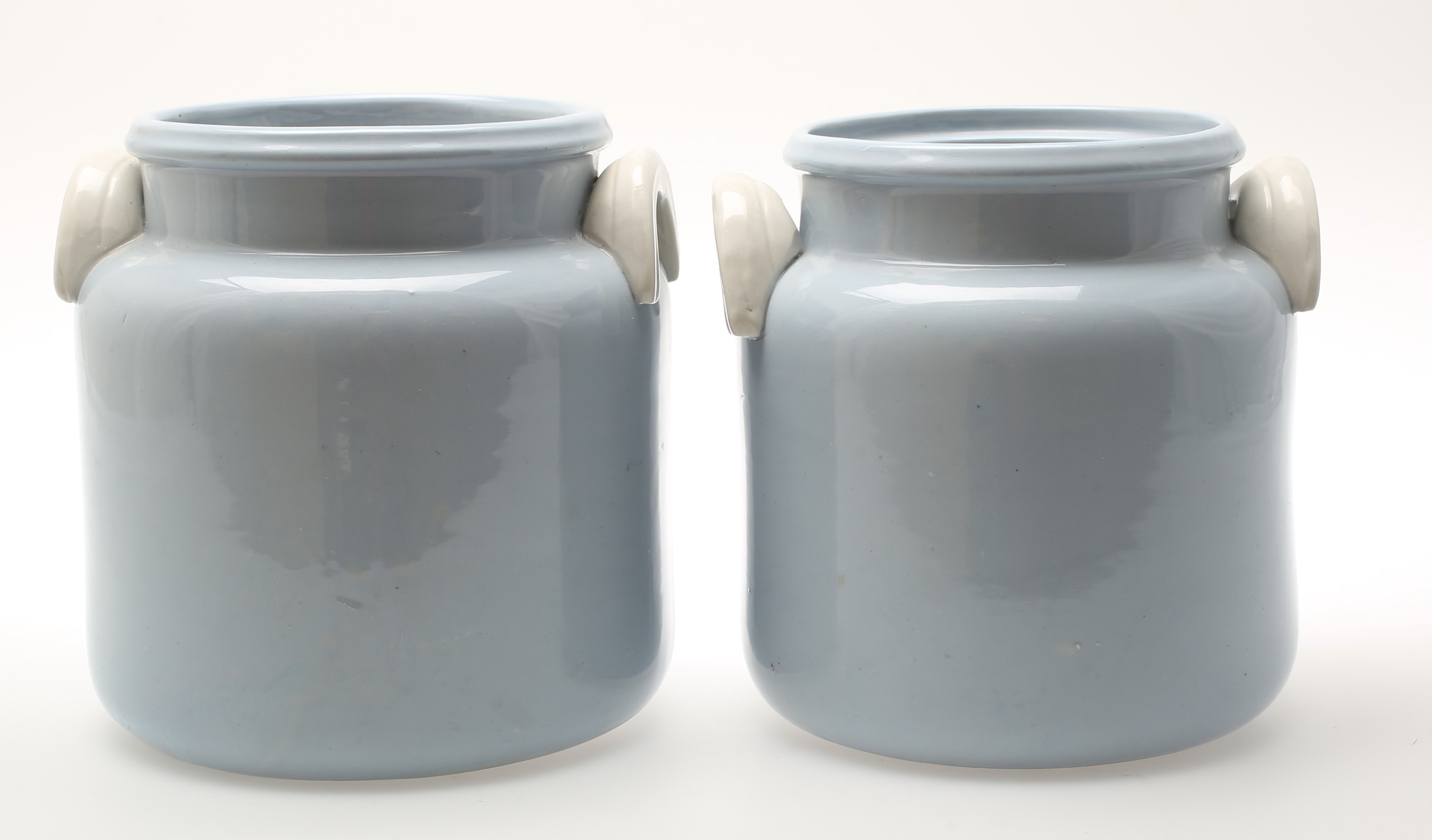 524290. TÖPFE 2 Stk. Entwurf Gunnar Nylund, Rörstrand, Mitte 20. Jahrhundert.