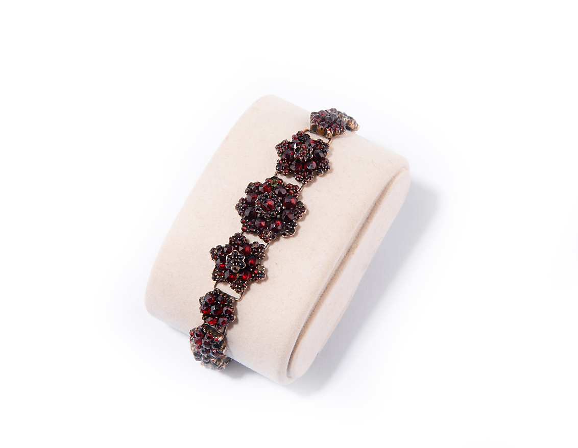 528859. 1 ANTIKES ARMBAND. Granat auf Double.