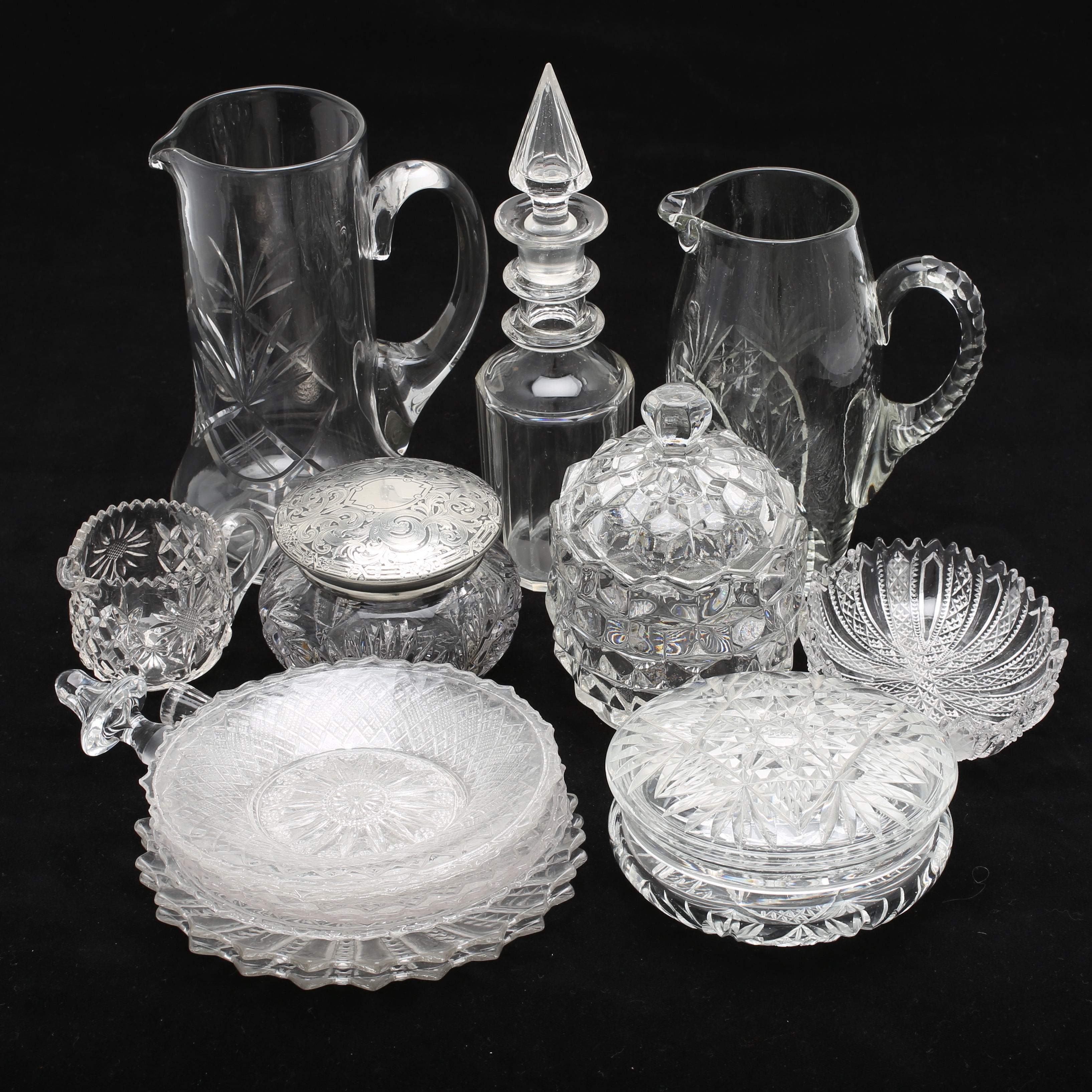 529254. Krüge, Teller usw., 16 Stück, Glas.
