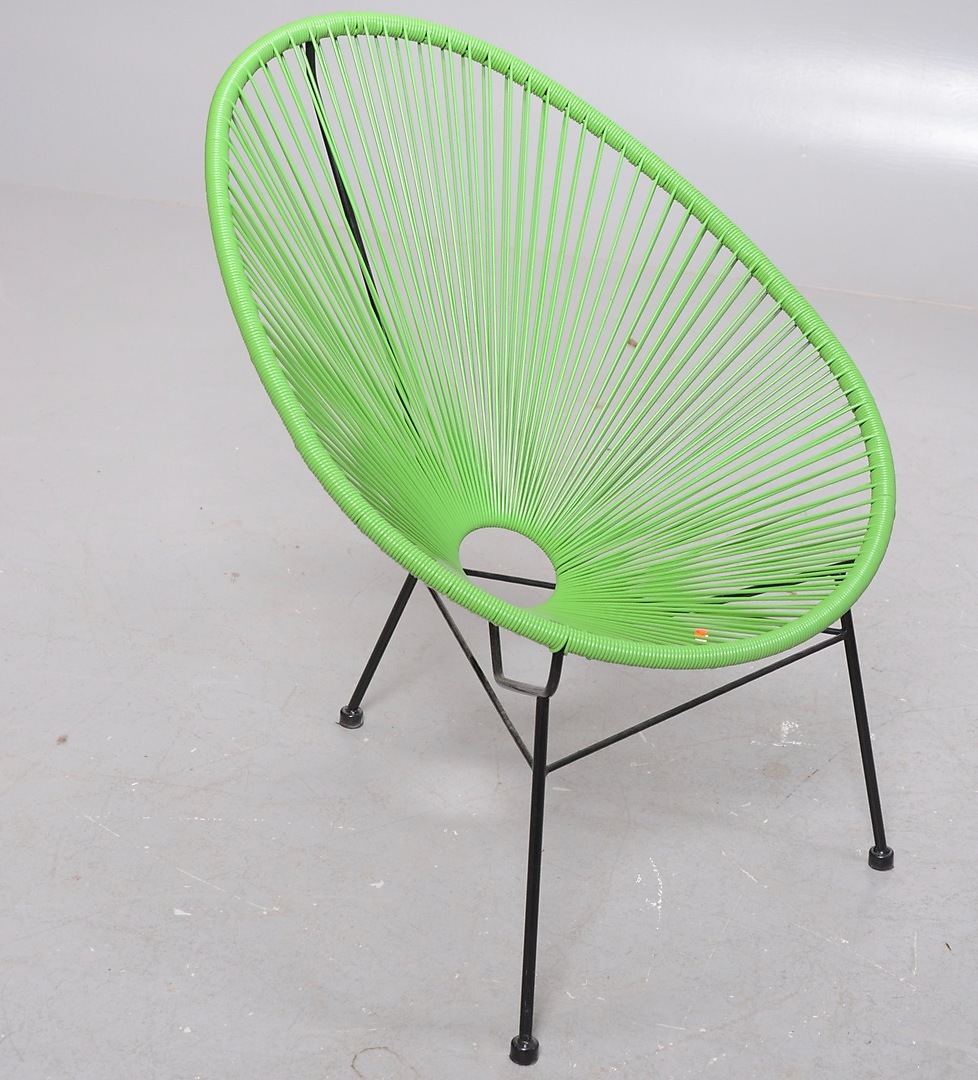529378. RETRO SESSEL, GEFLOCHTENER GRÜNER KUNSTSTOFF.