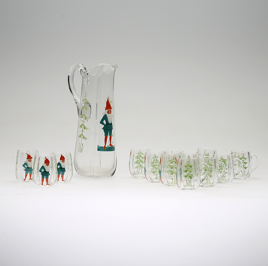 530902. GLÖGGSERVIS, 14 Teile, Glas, erste Hälfte 20. Jahrhundert.