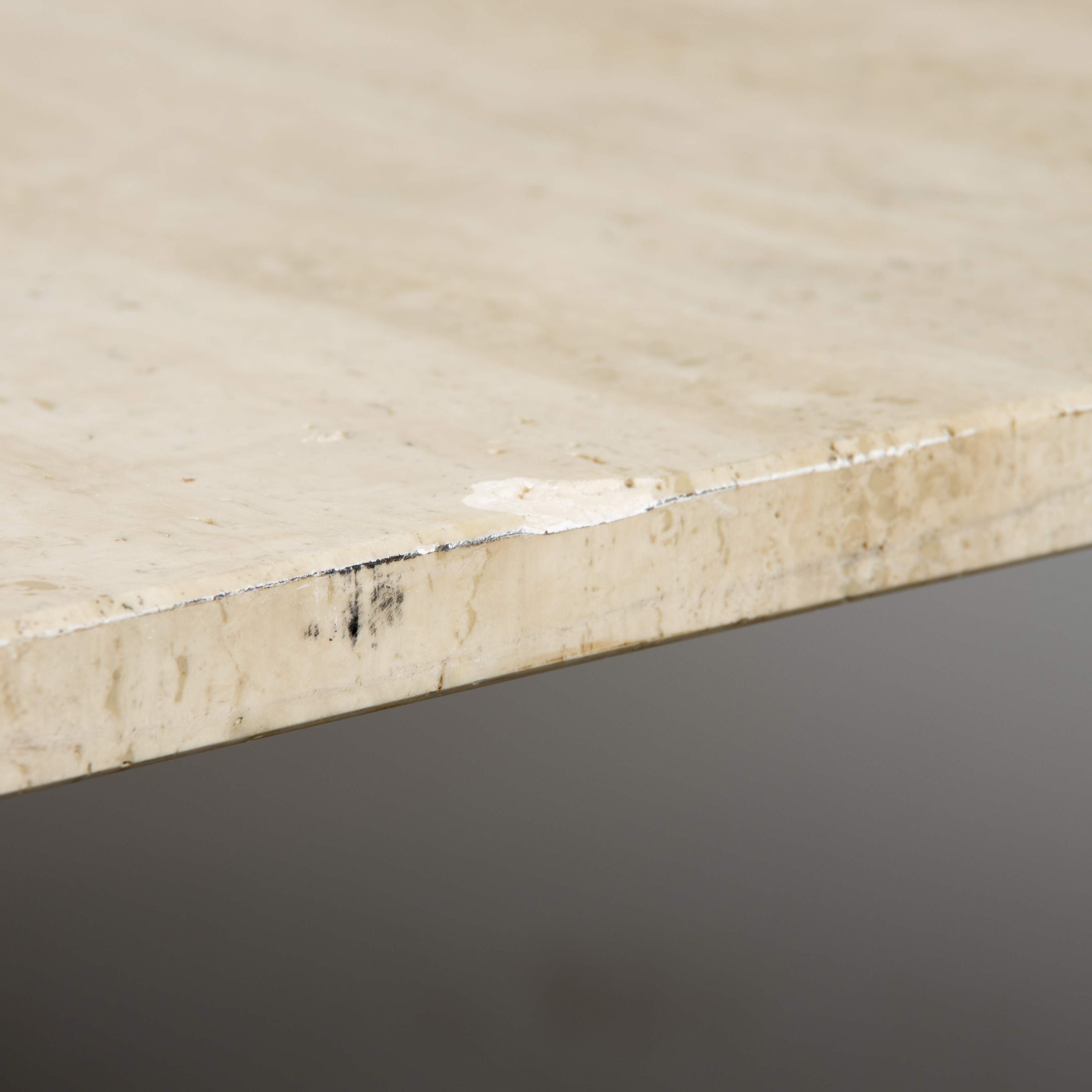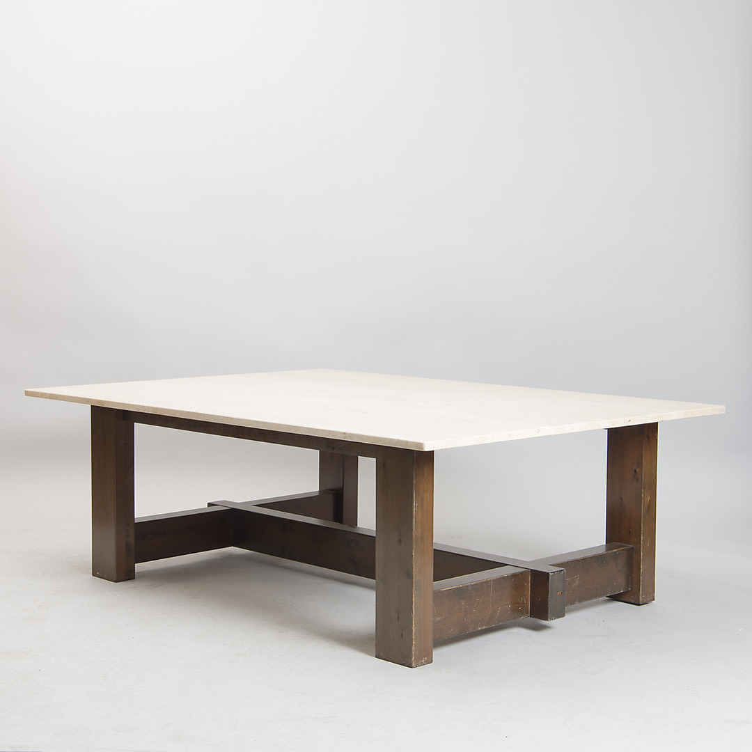 536415. COUCHTISCH, gebeizte Kiefer mit Travertin.