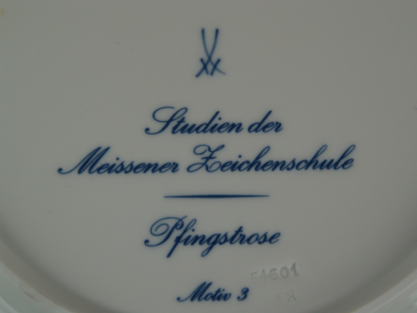 537308. MEISSEN Teller, blaue Pfingstrose.