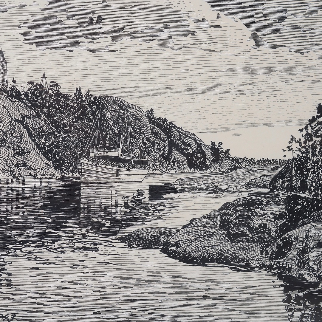539902. JOHN CRONANDER. SPÅR SUND MIT SPÅRÖ BÅK, LITHOGRAPHIE.