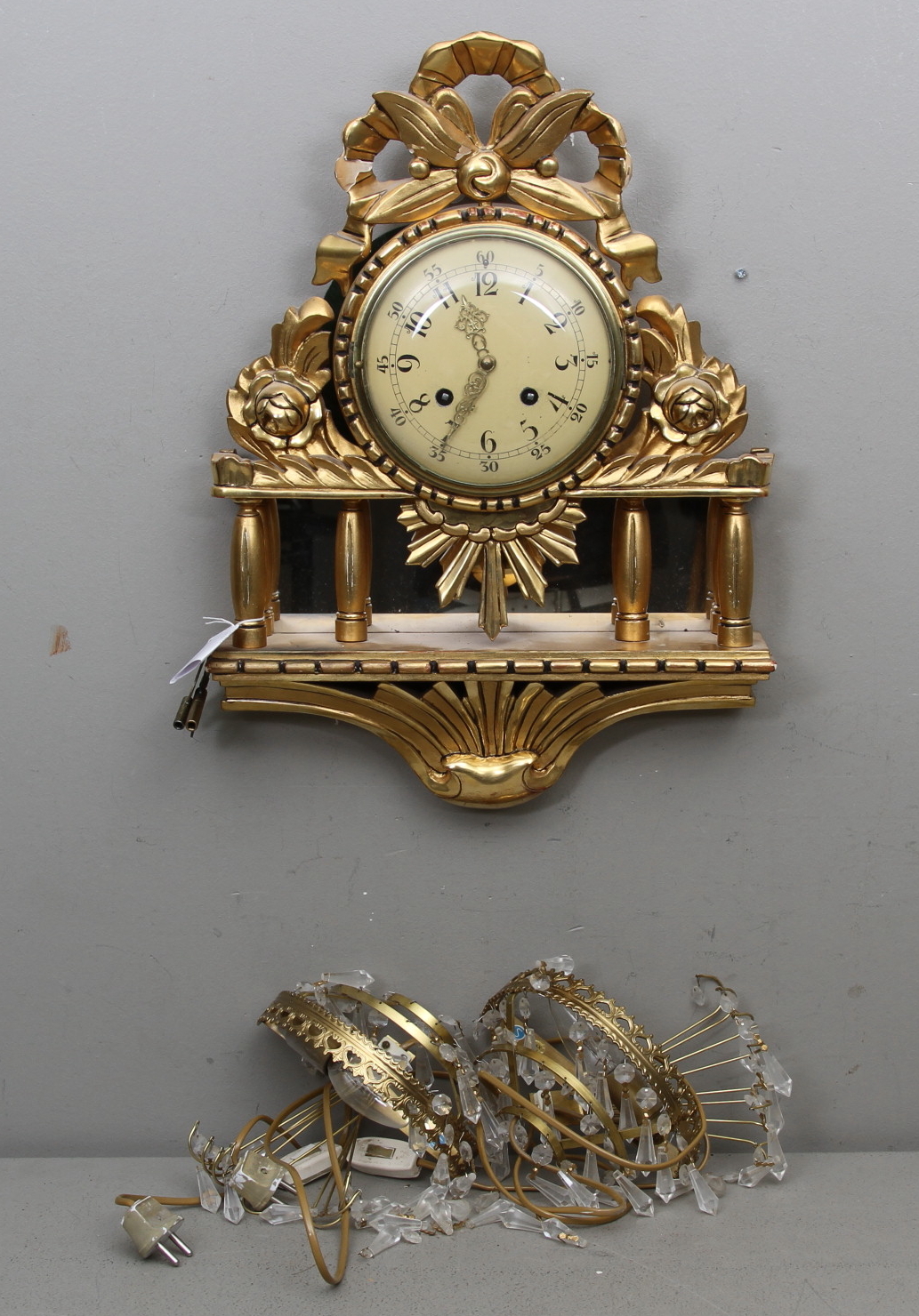 54013. WANDPENDEL, vergoldet, und 2 Kronleuchter, 1900er.