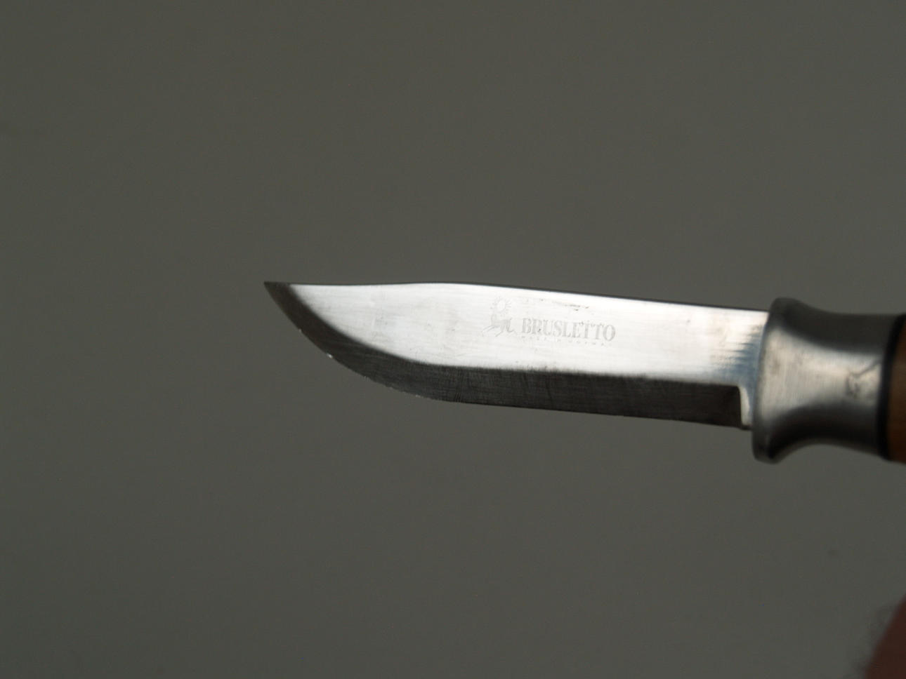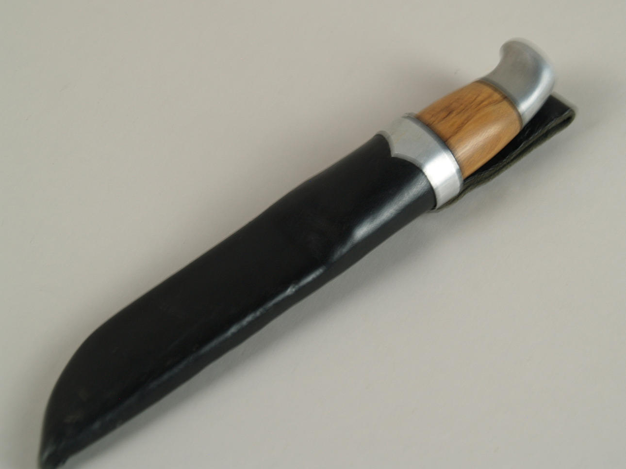 Jagdmesser - Brusletto, "Bamsen", Griff aus Maserbirke, Rindsleder-Scheide, Klinge ca. 12,5cm , Gesamtlänge ca. 22 cm, ca. 180g.