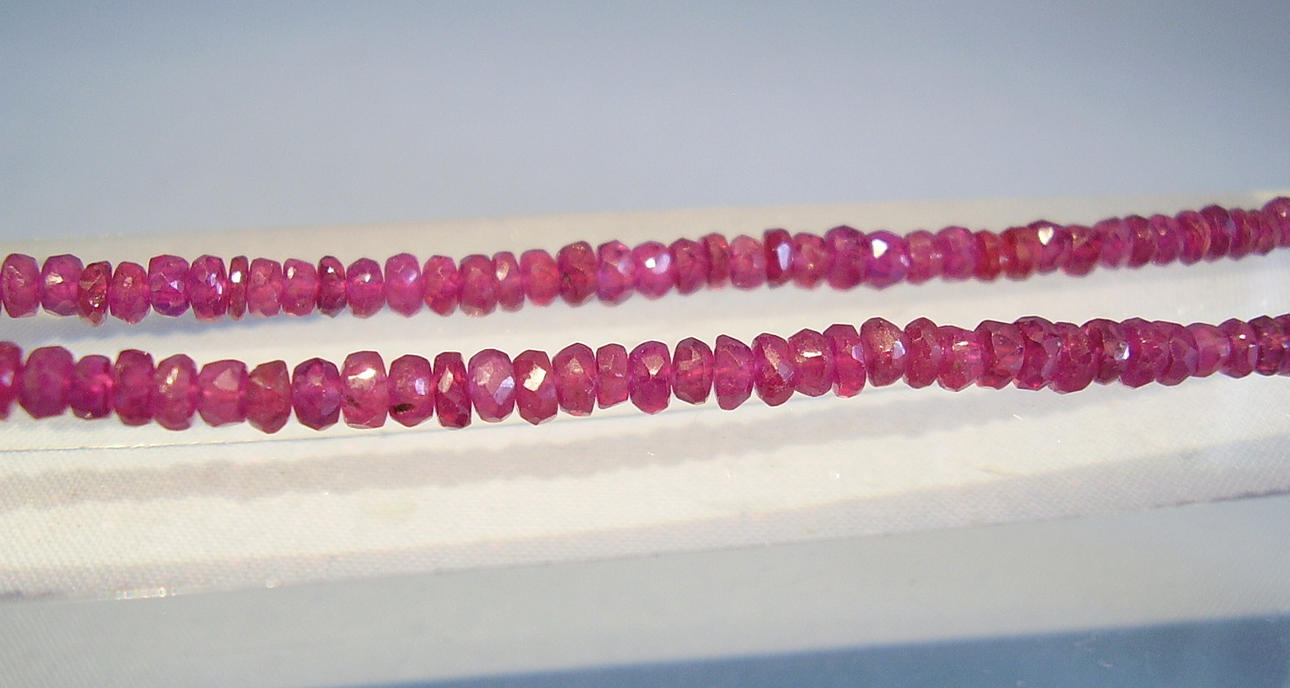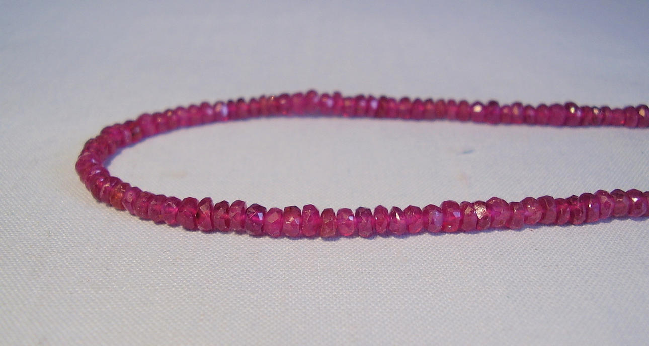 Kettenlänge 44 cm, Durchmesser der Rondellen 3,1 bis 4,2 mm, Rubin-Gewicht 70 ct.