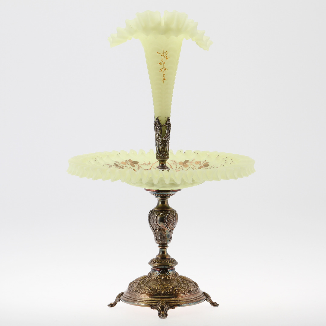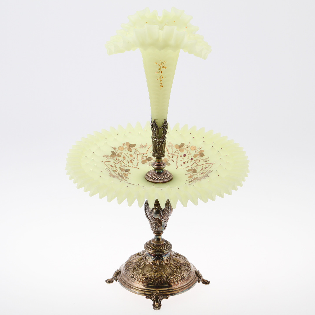 54510. TISCHMONTAGE, Neusilber und Glas.