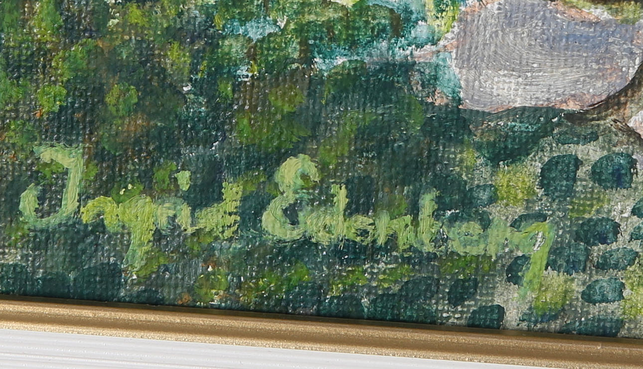 INGRID EDENBERG. Gartenbild, Mischtechnik auf Leinwand, signiert.
