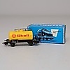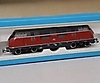 Diesellokomotive in Originalverpackung. Drei Karren in Originalverpackung.