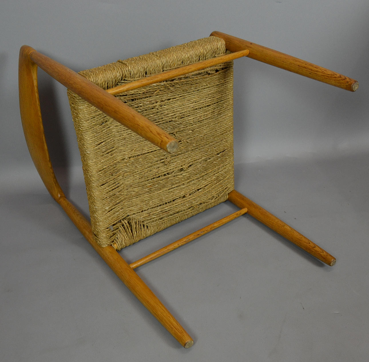 Die Holzoberflächen wurden abgeschliffen und neu lackiert, das Geflecht erneuert. Guter Zustand.