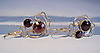 Länge der Ohrringe 4 cm, Breite 1,8 cm, Durchmesser der Granat-Rosen 5,6 mm sowie 8,9 mm, Gewicht 6,2 Gramm.