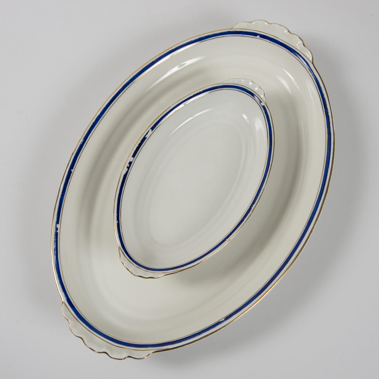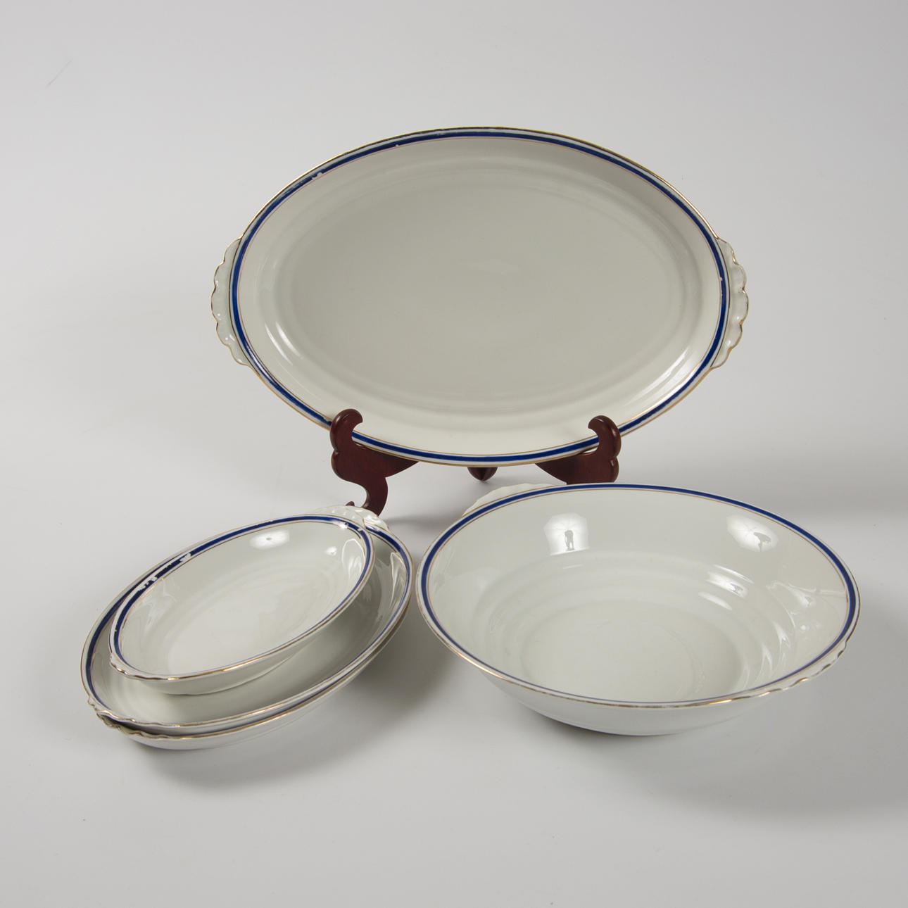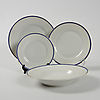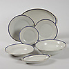 9 Teller Durchmesser 25 cm, 11 Teller Durchmesser 21,5 cm, 7 Teller Durchmesser 18 cm, 12 tiefe Teller Durchmesser 25 cm, 4 Teller Länge 23-38,5 cm und Schale.
