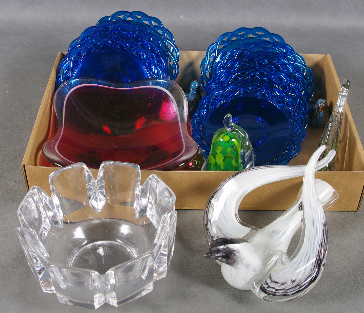 55702. GLASOBJEKTE, Figuren, Schalen und Schalen.