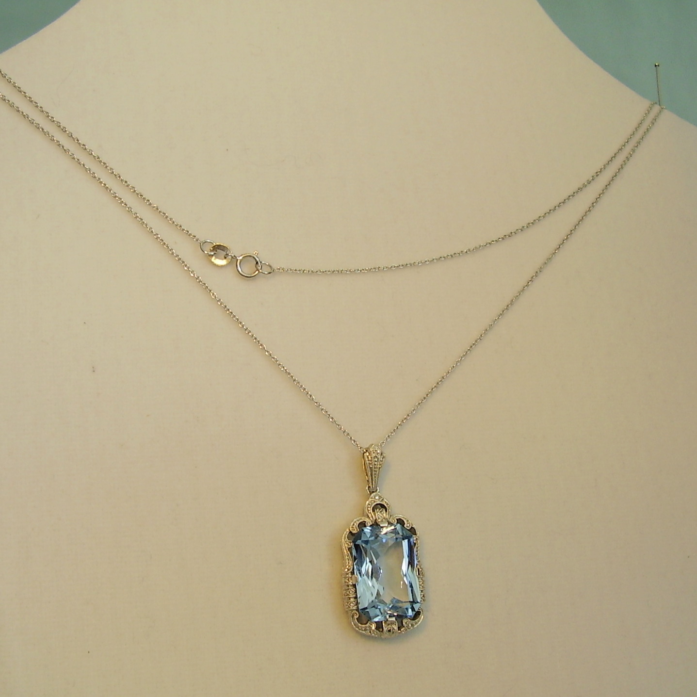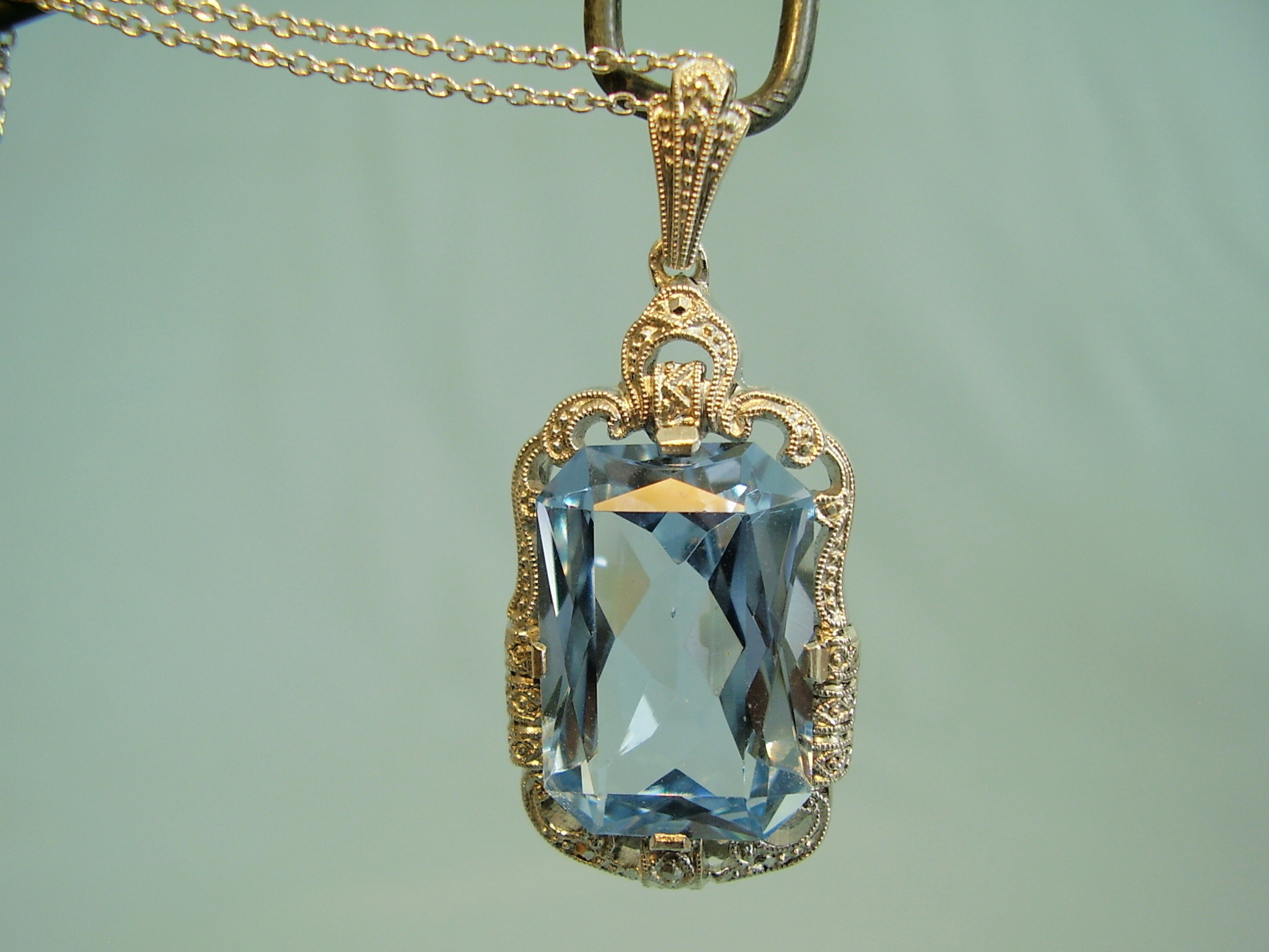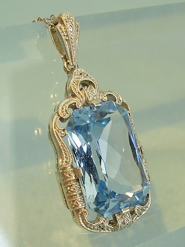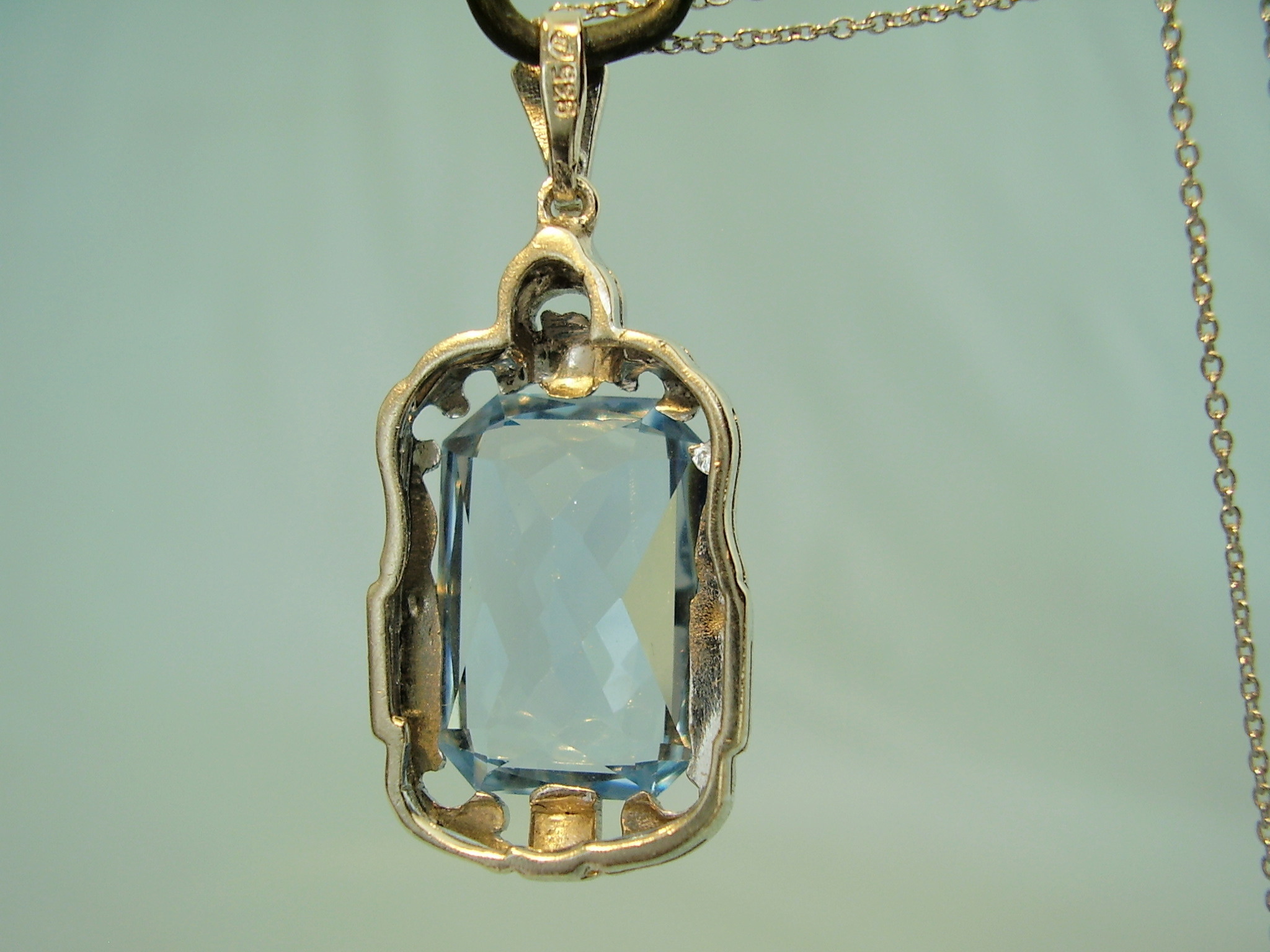 557166. ART DECO ANHÄNGER BLAUER SPINELL.