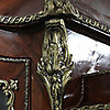 Nussbaum mit vergoldeten Messingdetails. Gewölbte Form auf hohen Beinen. Länge 118 cm, Breite 56 cm, Höhe 193 cm.