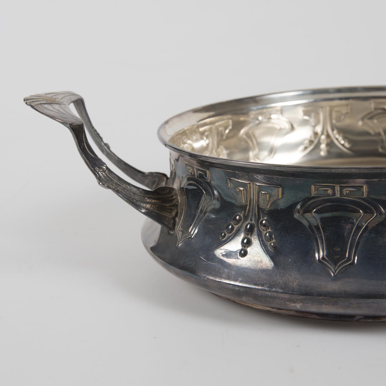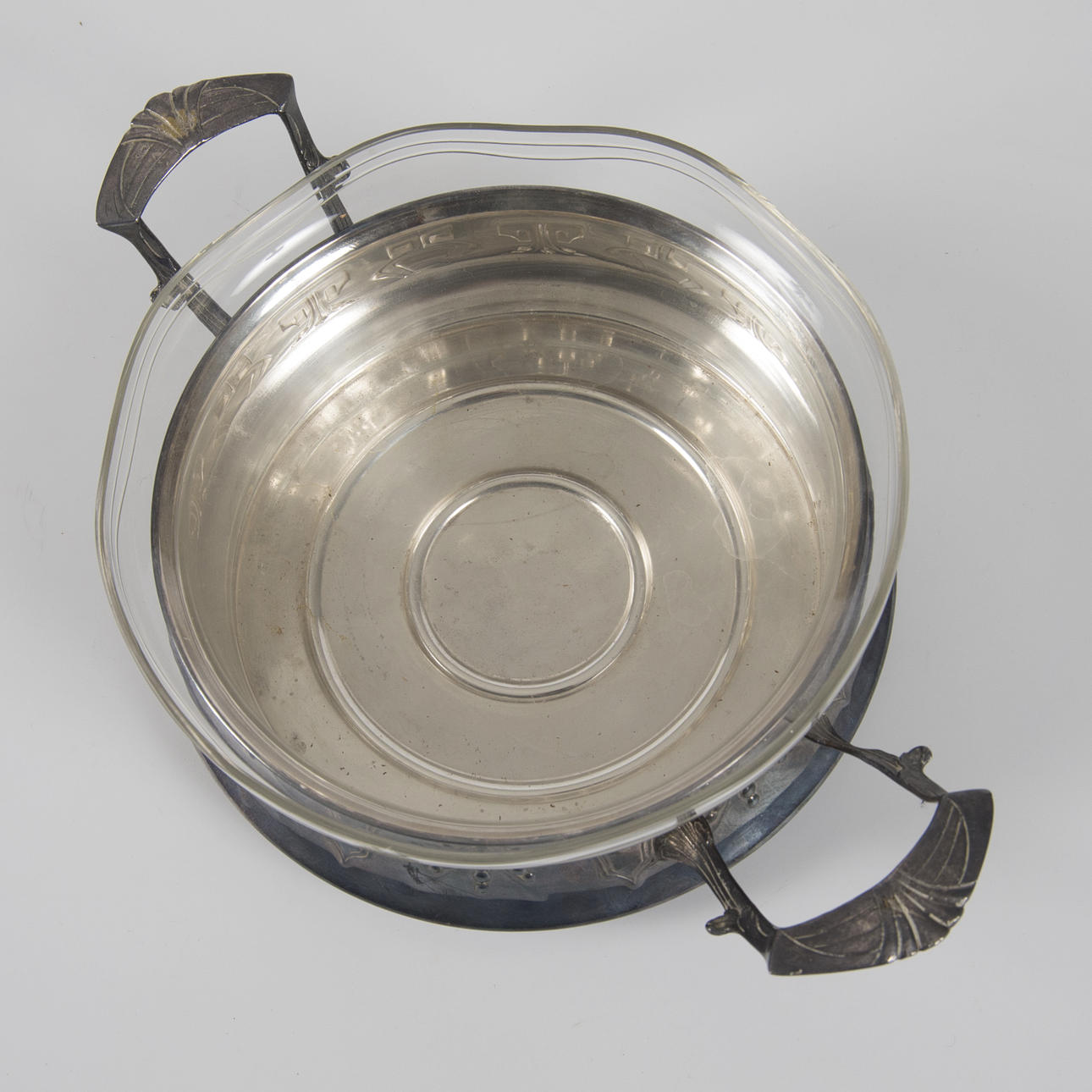 558101. SCHALE mit Glaseinsatz, Neusilber/Glas, Jugendstil.