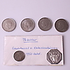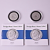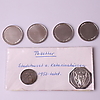 Gedenkmünze aus Silber, Carl XVI Gustaf 1973-1998 25 Jahre als Staatsoberhaupt, Durchmesser 30 mm. 4 SEK 1 Münzen, ganzjährig 2009, Carl XVI Gustaf, Durchmesser 25 mm. 2 Wertmarken, Metall, Stockholmer Rathaus + Katarinahissen, 1950er Jahre.