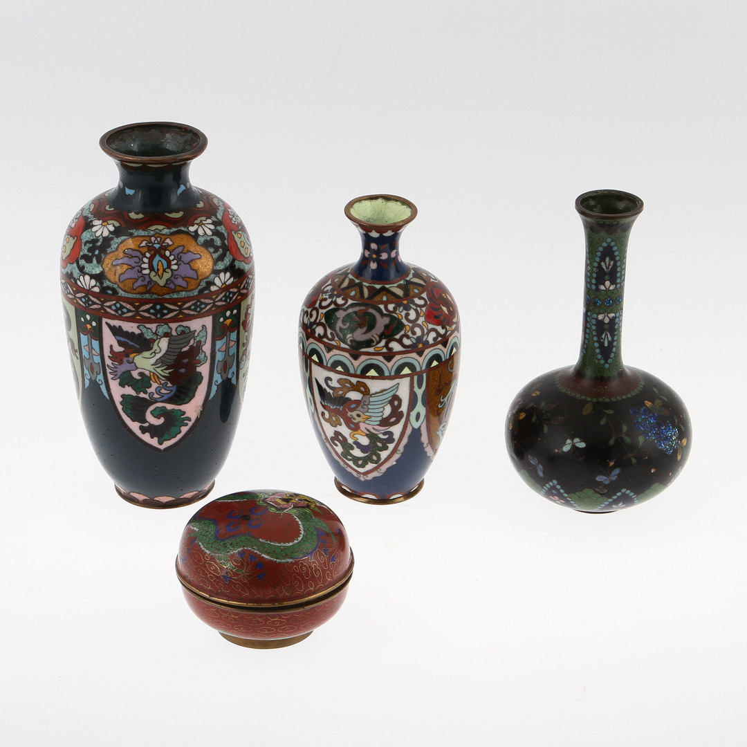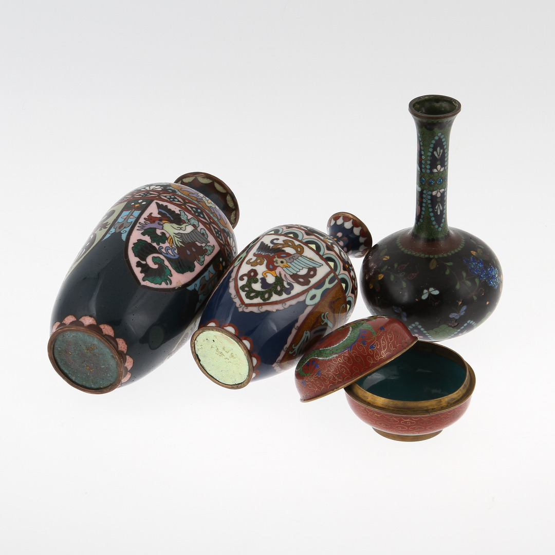 55946. Ein Menge CLOISONNE, 4 Teile, 20. Jahrhundert.