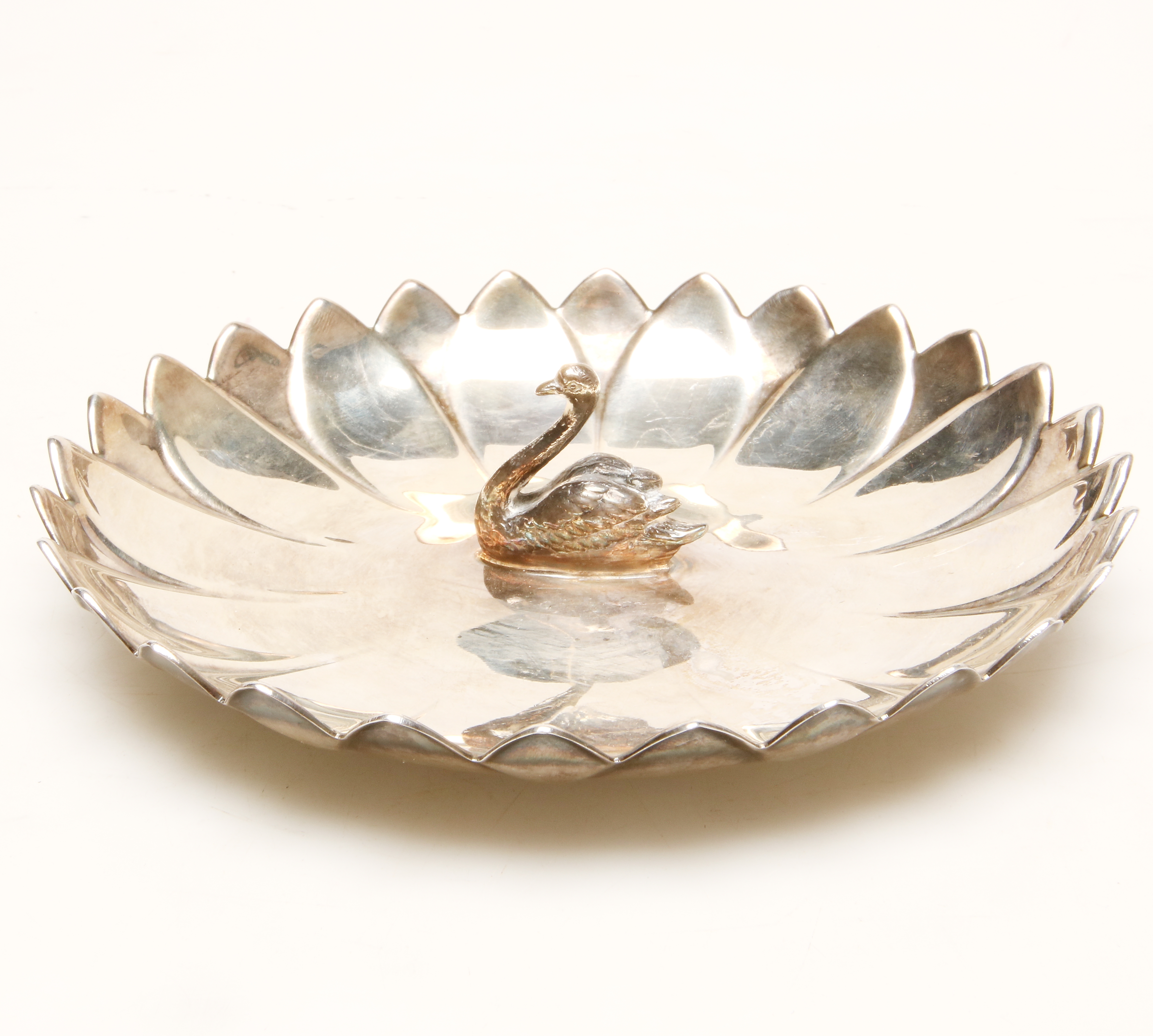 561101. PLATTE mit Schwan, Neusilber, Reed & Barton.