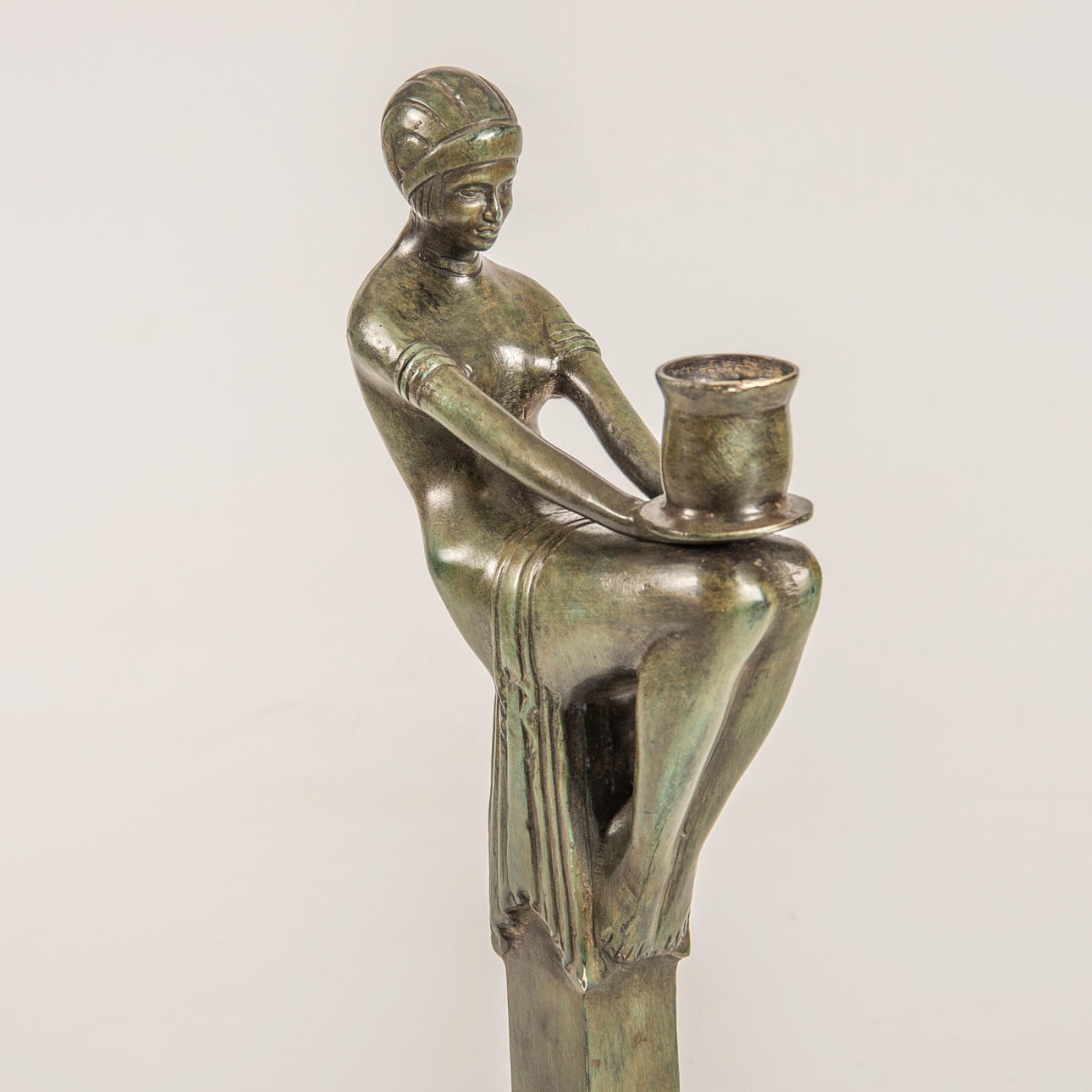 561795. KERZENHALTER, patinierte Bronze, Art Deco Stil.