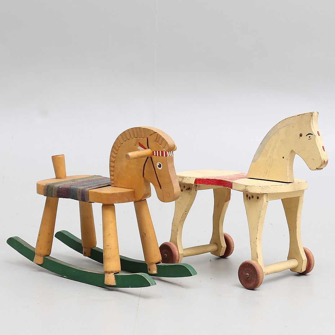 561918. SCHAUKELPFERDE, 2 Stk., Holz, Mitte 20. Jahrhundert.