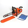 Profimaschine, benzinbetrieben, 2,7 KW, 50 ccm, 113 db, Antivibrationsgriff, Trittschutz, Kettenbremse. Zusätzliche Kette (unbenutzt/neu) und Feile enthalten. Länge 80 cm, Breite 31, Höhe 27 cm, Schwertlänge 13"/33 cm. Gewicht 6,5 kg.