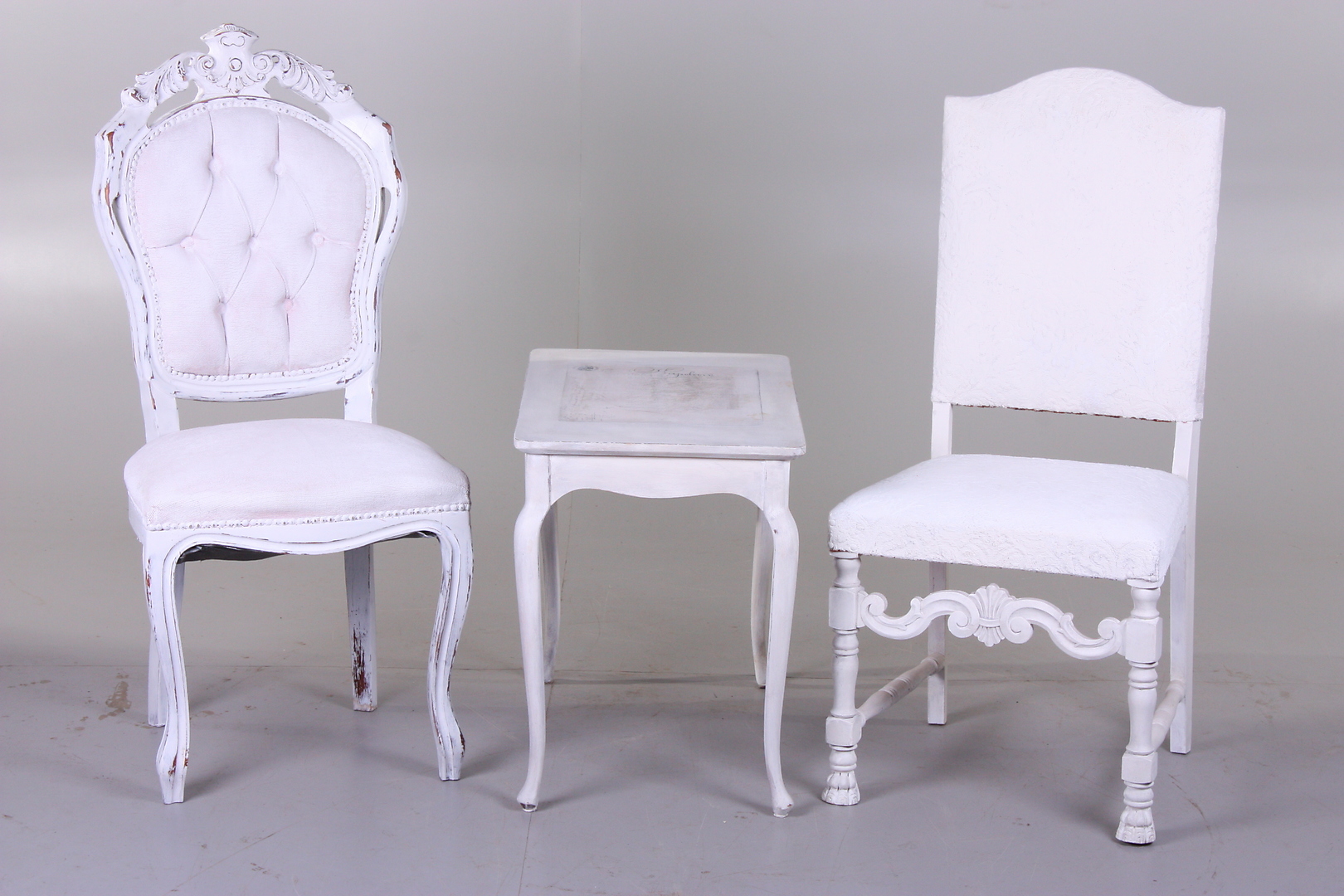 563122. TISCH und STÜHLE, Shabby Chic, weiß lackiert.