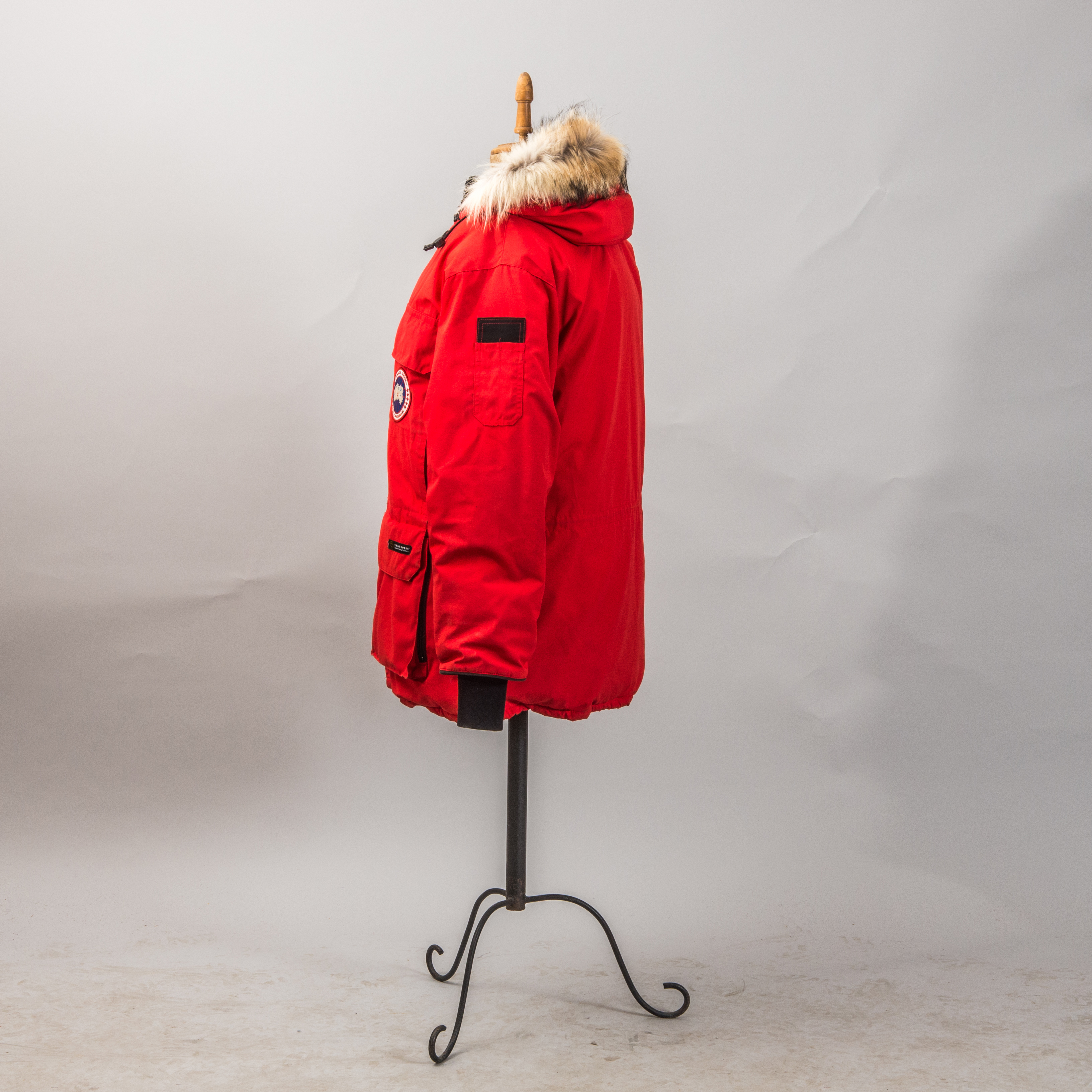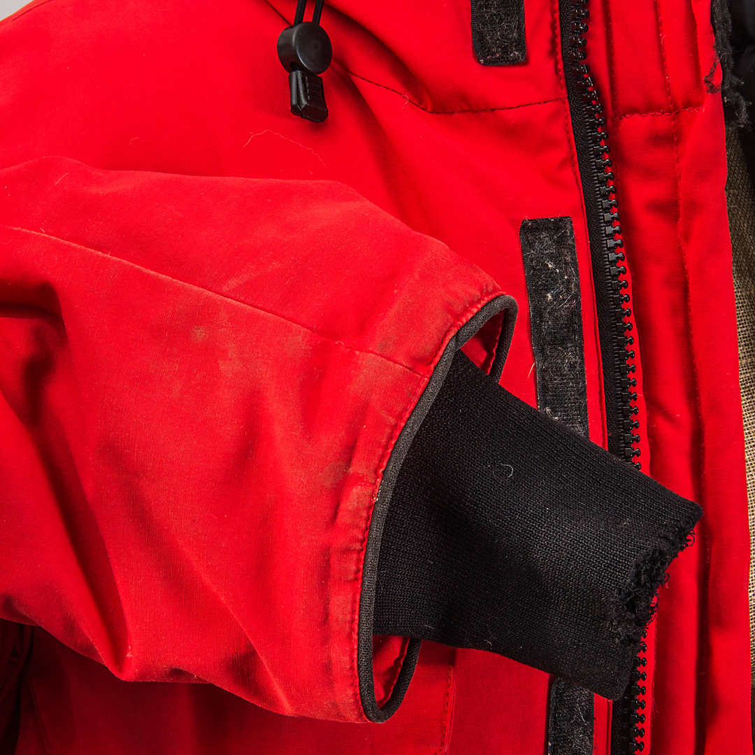 570419. JACKE, rot mit Pelzkragen, Canada Goose.
