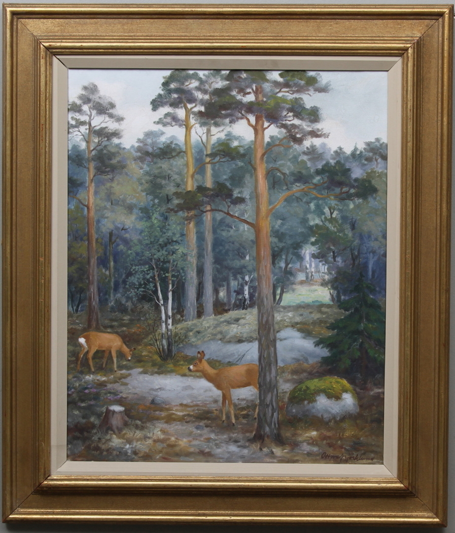 57276. ODDMAR BJÖRKLUND. Waldlandschaft mit Rehen.