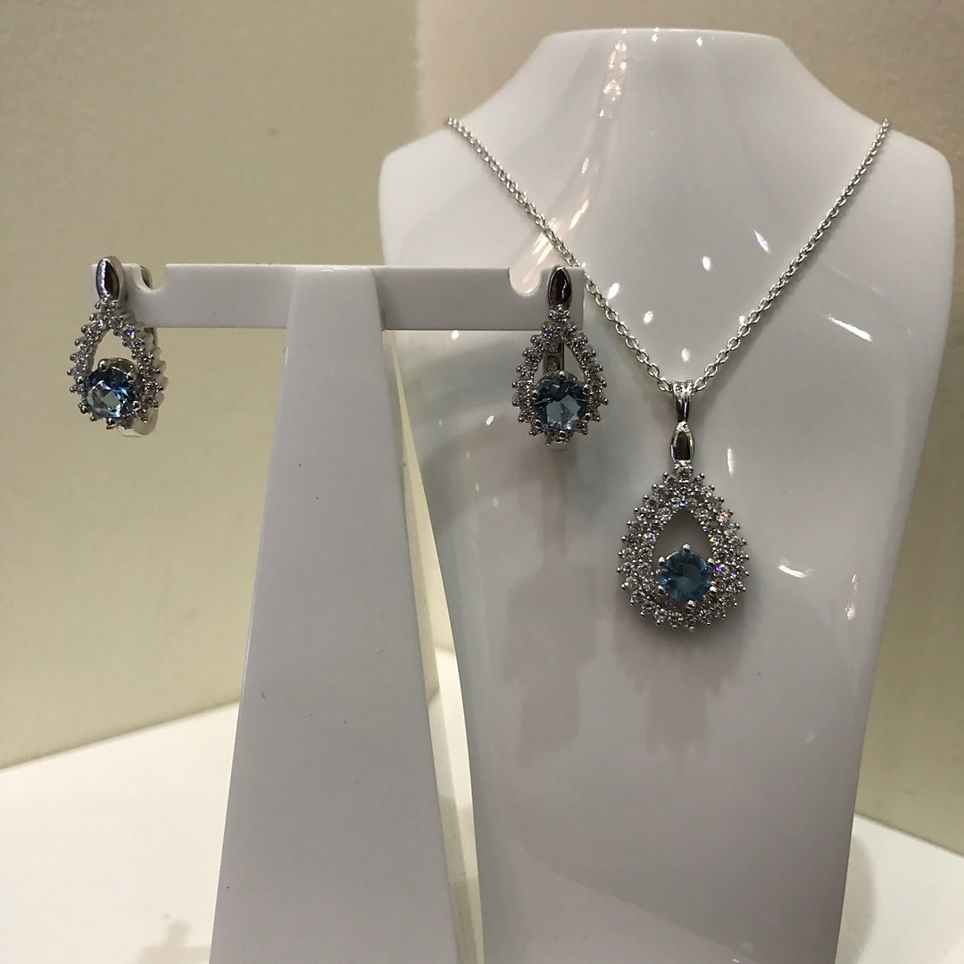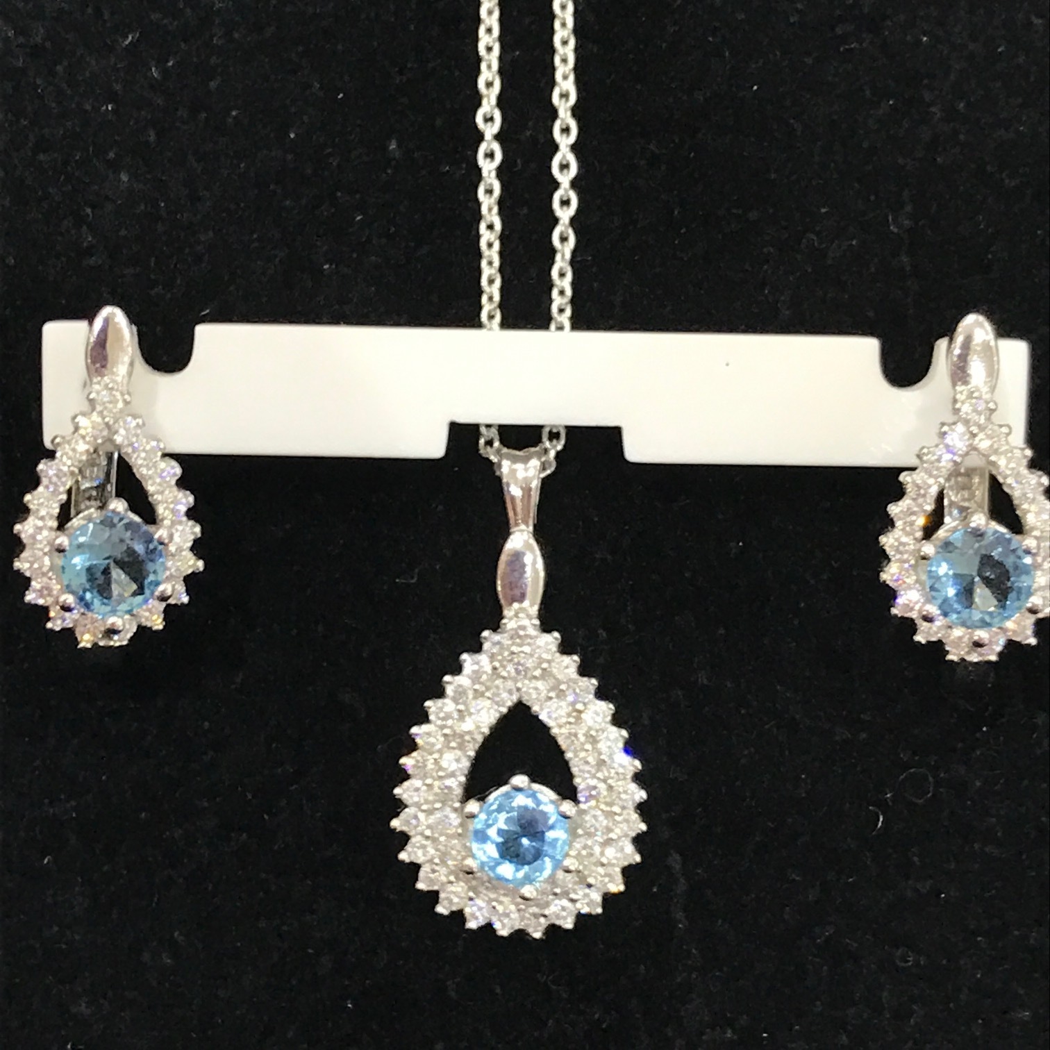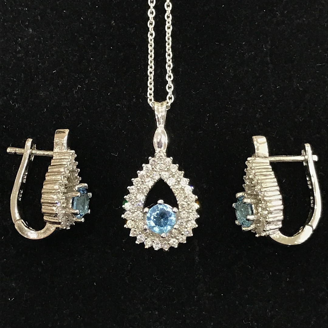 573917. TÜRKIS STEIN SILBER OHRRINGE UND HALSKETTE SET.