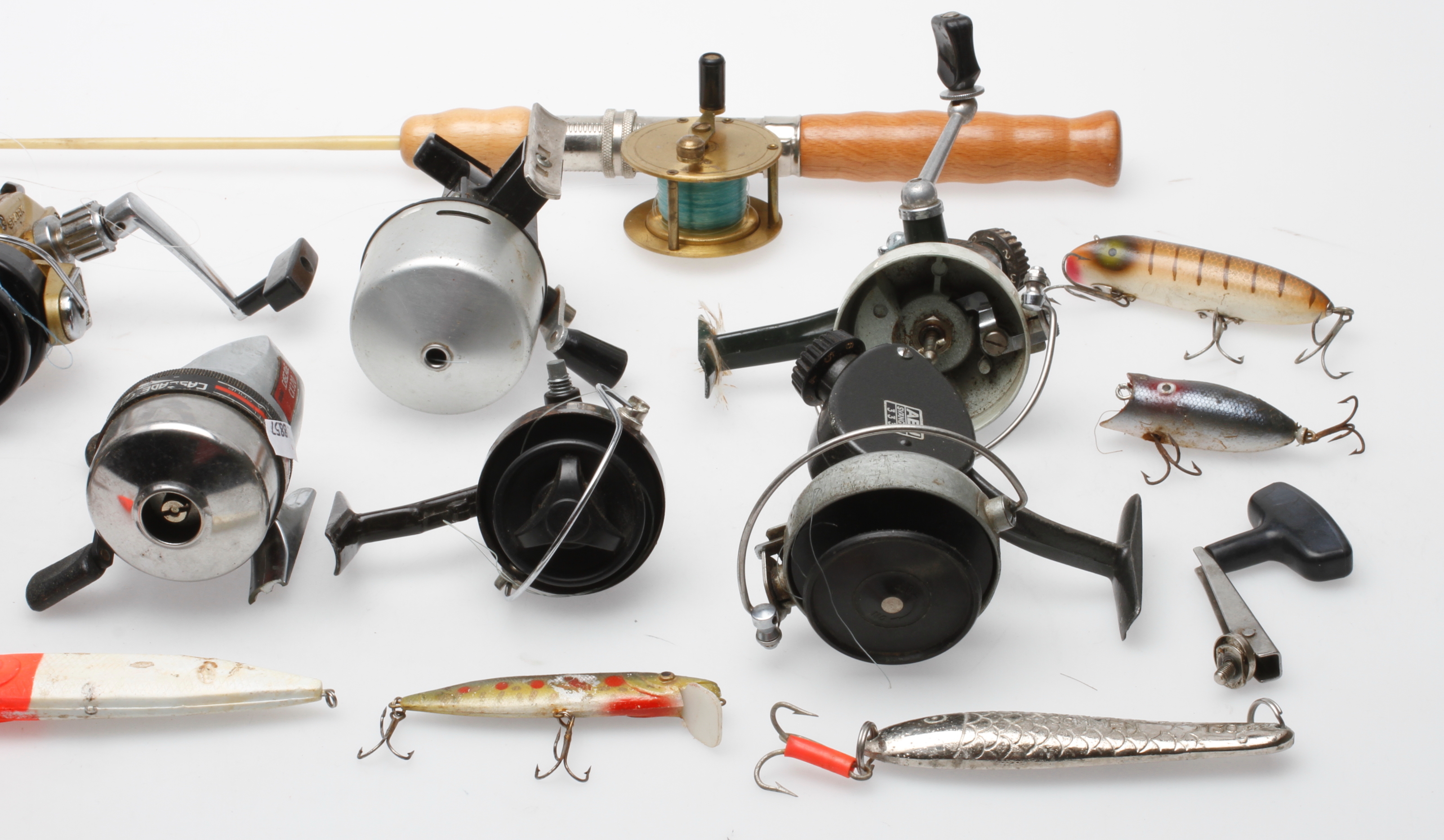 57559. ANGELAUSRÜSTUNG, 10 Teile und diverse. Merkmale.