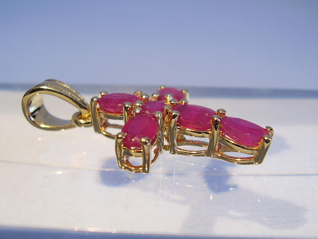 Länge des Anhängers 3,3 cm, Breite 1,6 cm, Rubine Format 6 x 4 mm und 4,5 mm im Durchmesser, zusammen ergibt das ca. 3,55 ct.