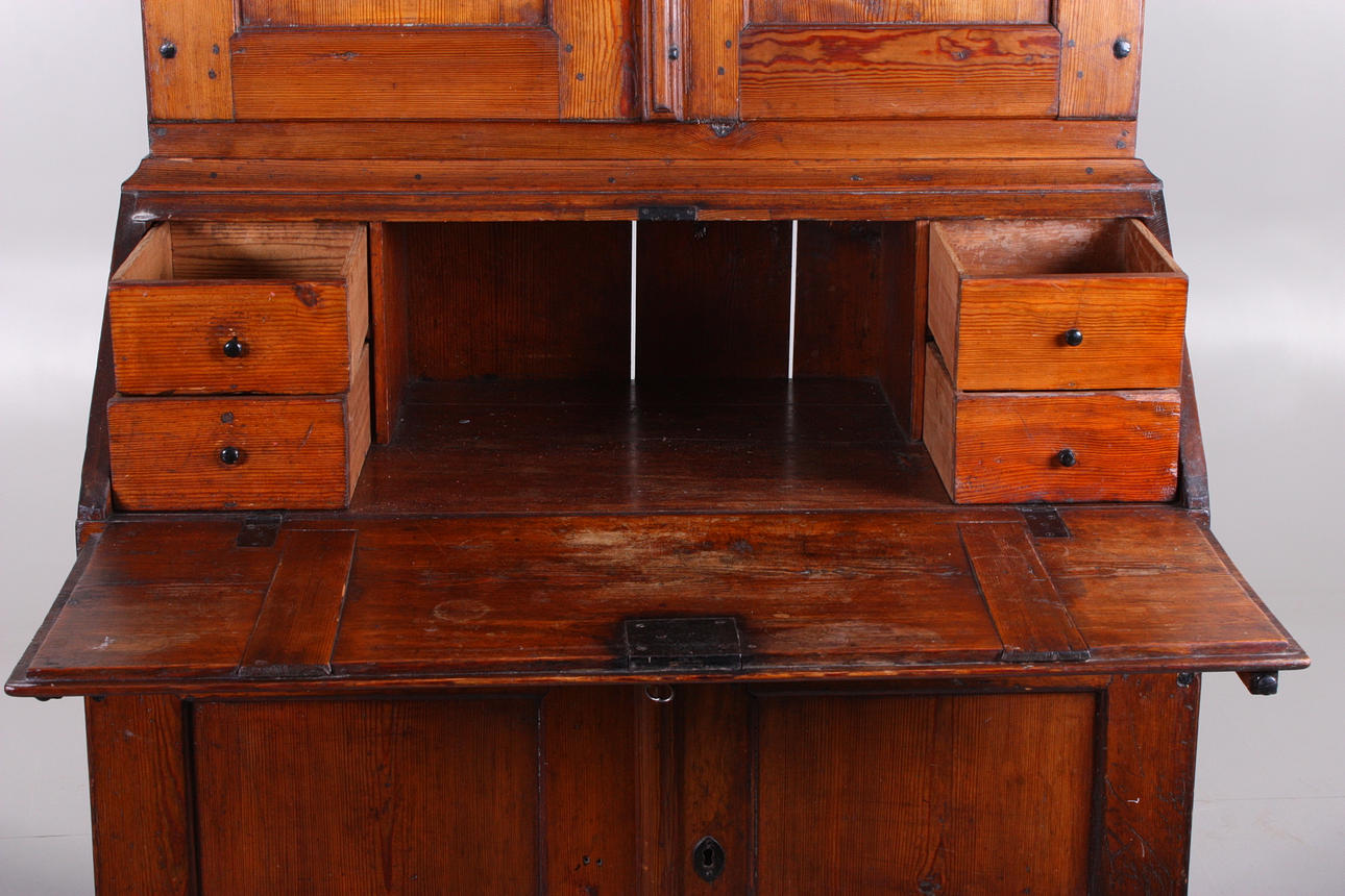 577079. SCHIEBEKLAPPE MIT AUFSATZSCHRANK, 19. Jahrhundert.