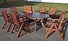 6 Stühle 1 Beistelltisch 105 x 60, Höhe 71 cm 1 Tisch mit Einlegeplatten 205 x 105 cm 2 Einlegeplatten 60 cm.