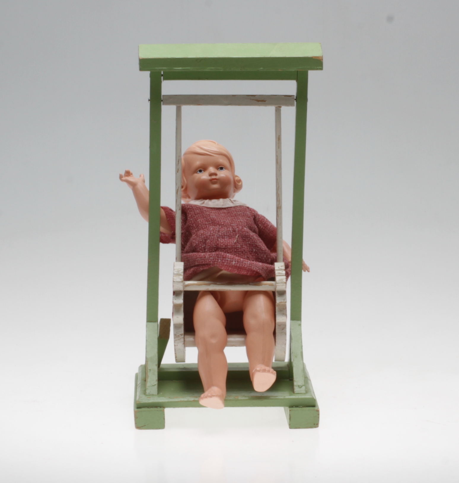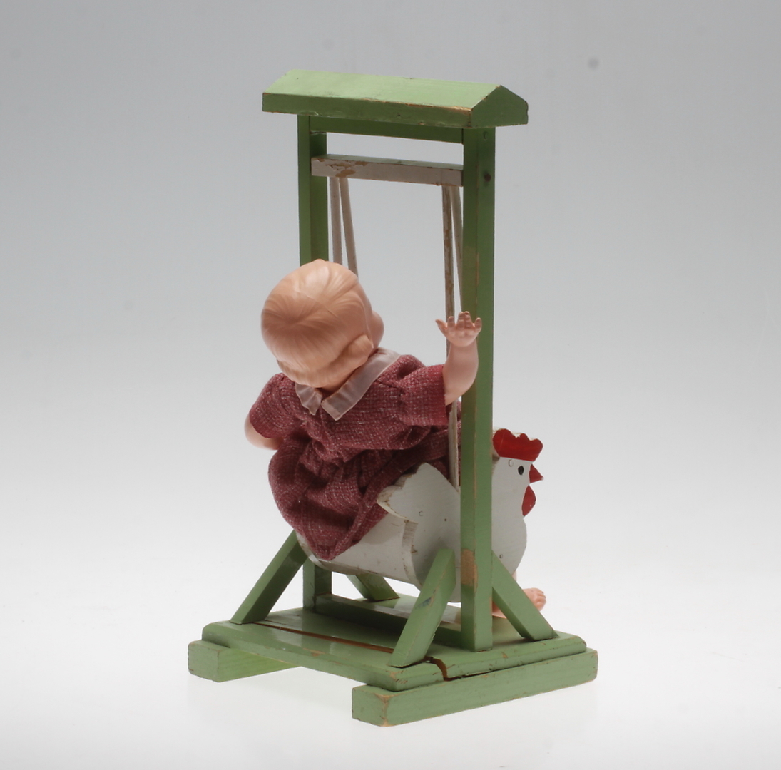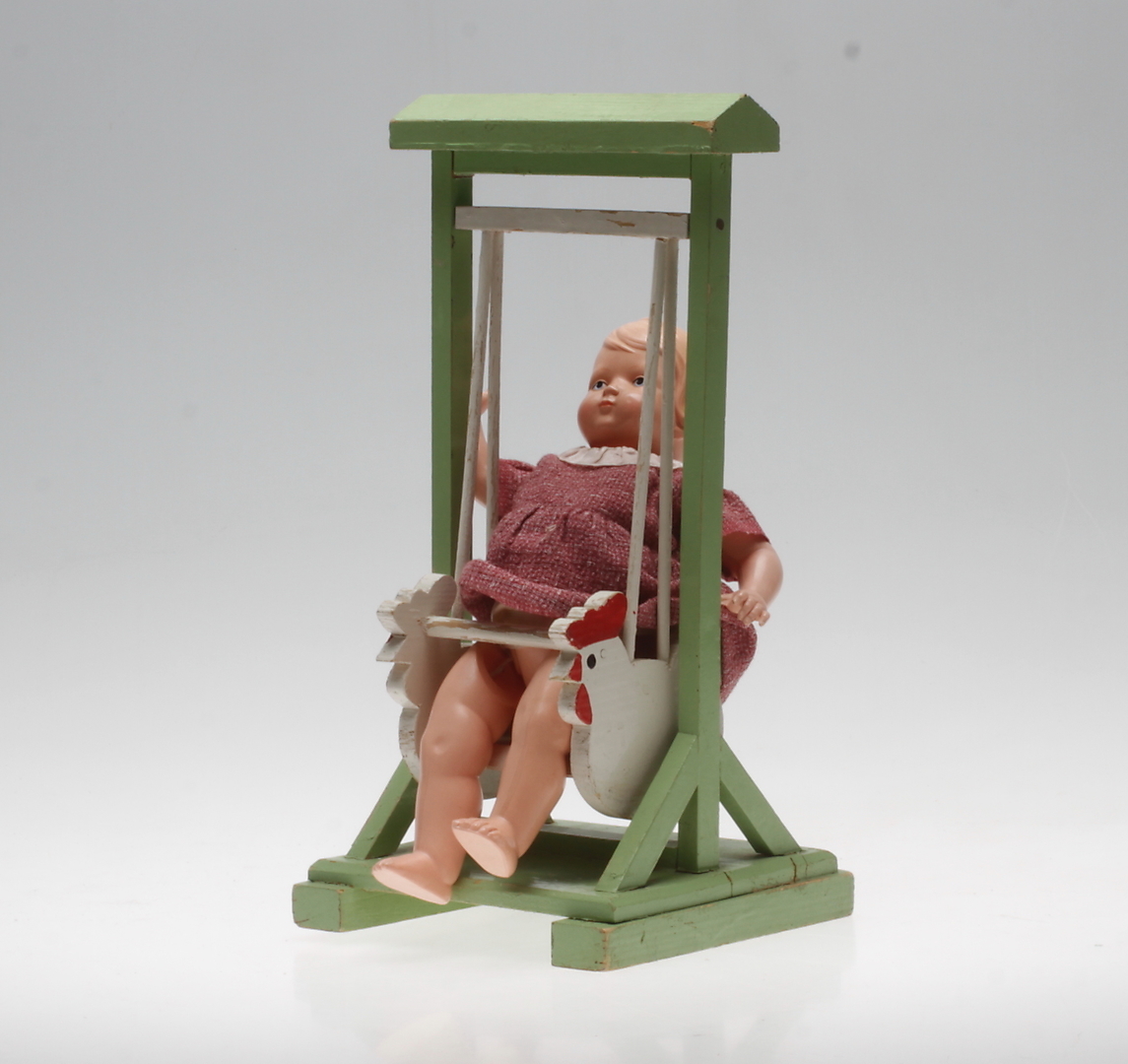 583143. DOLL SWING, Holz mit DOLL, Kunststoff, Mitte 20. Jahrhundert.
