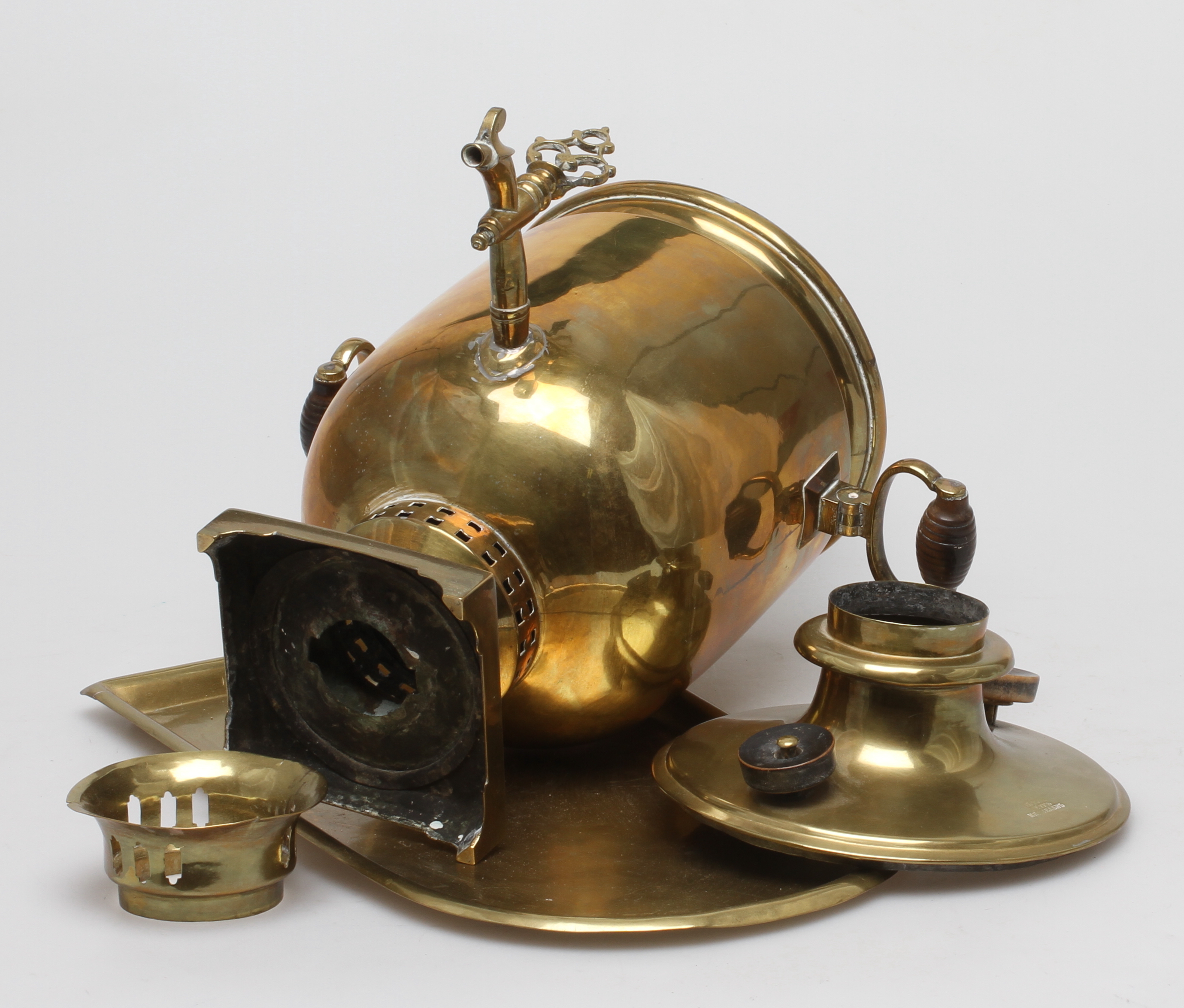 58991. SAMOVAR, auf Tablett, Messing, Russland.