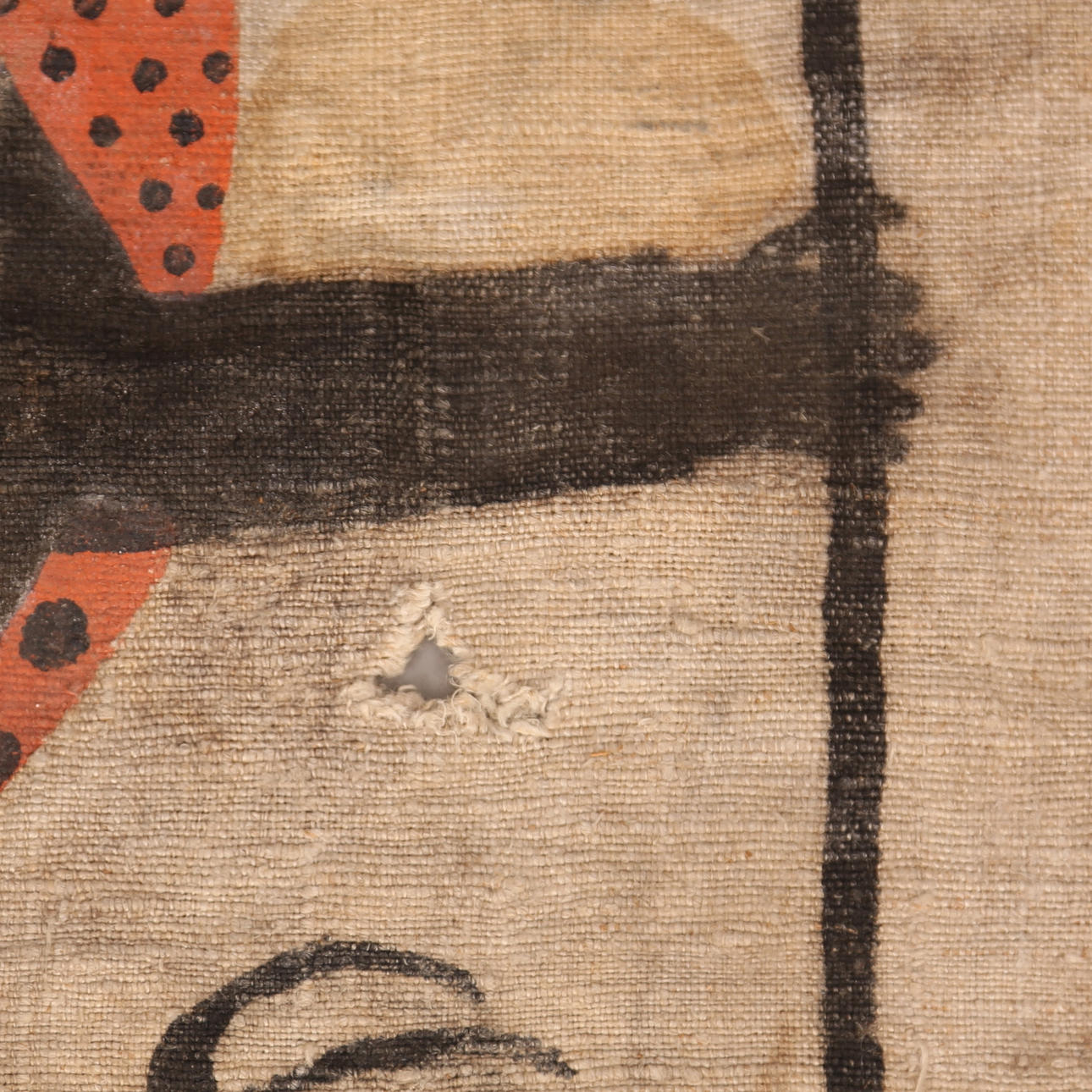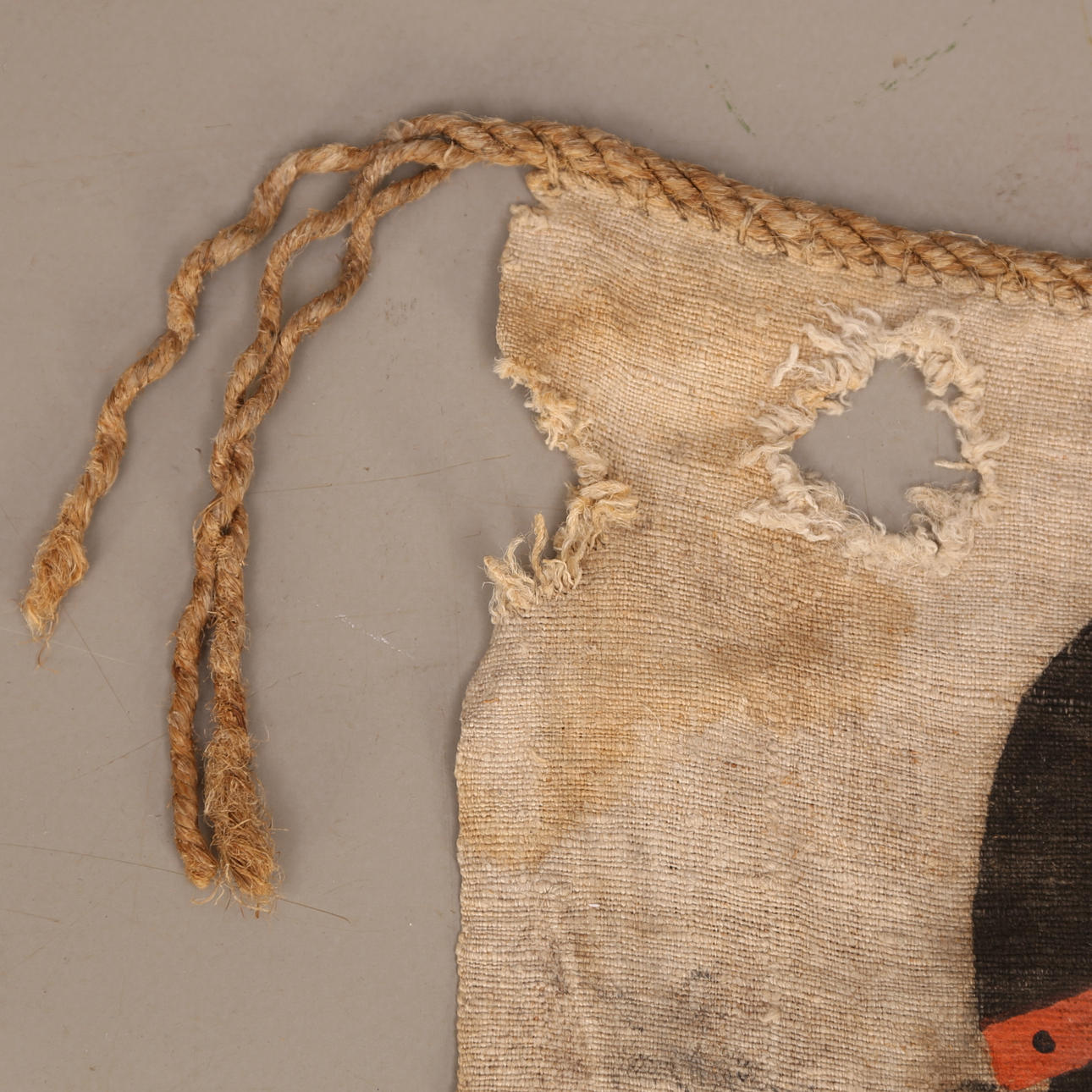 WOLF PATCH / WOLF VOGELSCHEUCHE, Jutegewebe, farbiges Symbol, 17./19. Jahrhundert.